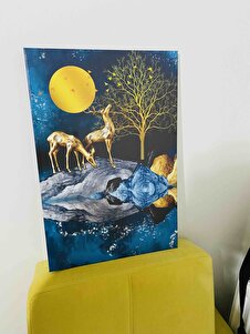 Altın Dokulu Geyik Manzara Kanvas Tablo Altın Dokulu Geyik Manzara Kanvas Tablo HDART2374 80 x 120