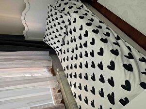 Siyah Kalp Desenli Tek Kişilik Kadife Yatak Örtüsü -beyaz Siyah Kalp Desenli Tek Kişilik Kadife Yatak Örtüsü -beyaz 56277 تک سایز