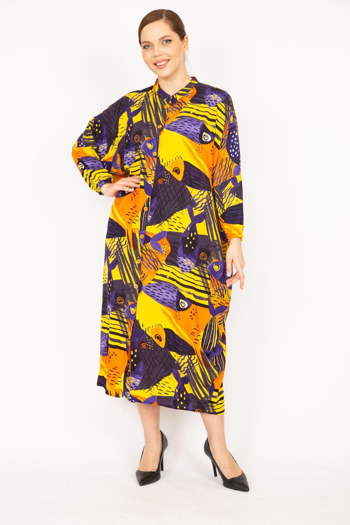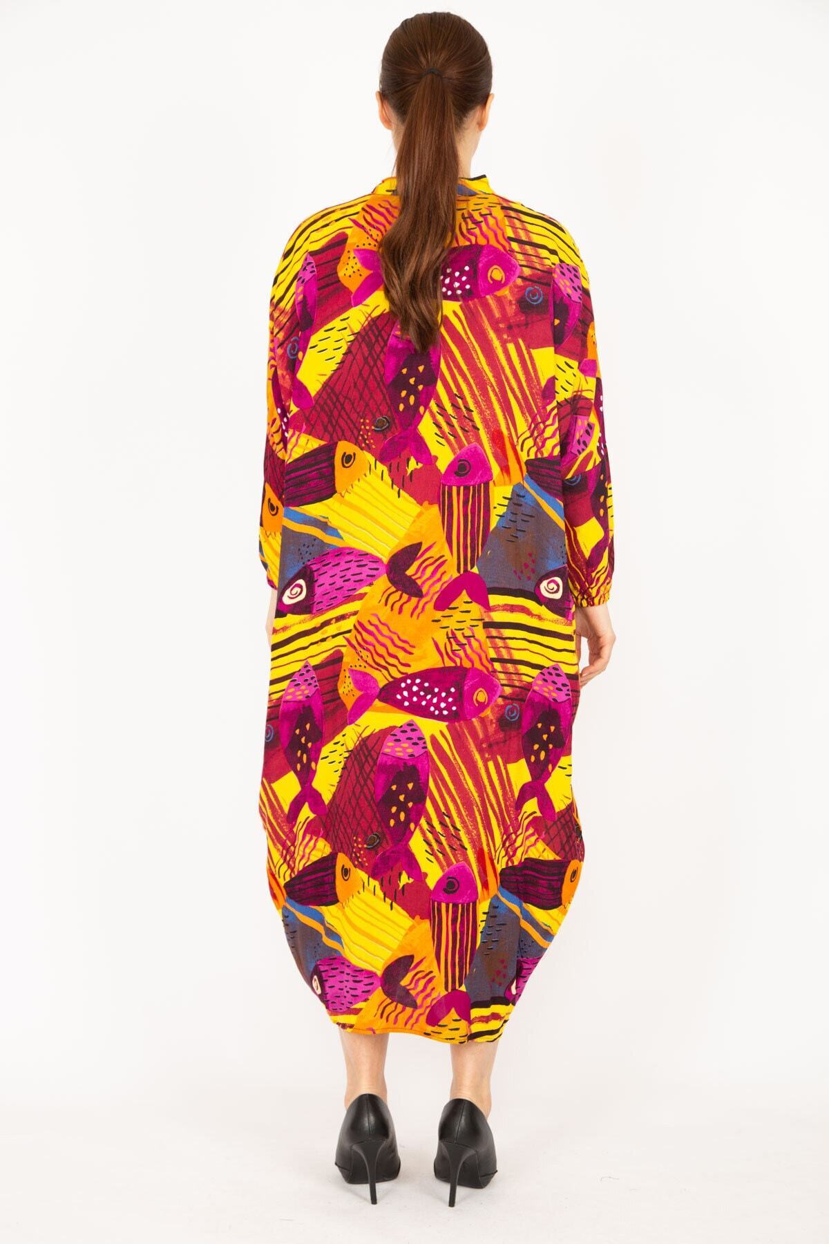 Kadın Fuşya Büyük Beden Dokuma Viskon Kumaş Ön Boy Düğmeli Elbise 65n35965 Kadın Fuşya Büyük Beden Dokuma Viskon Kumaş Ön Boy Düğmeli Elbise 65n35965 65N35965 62-64