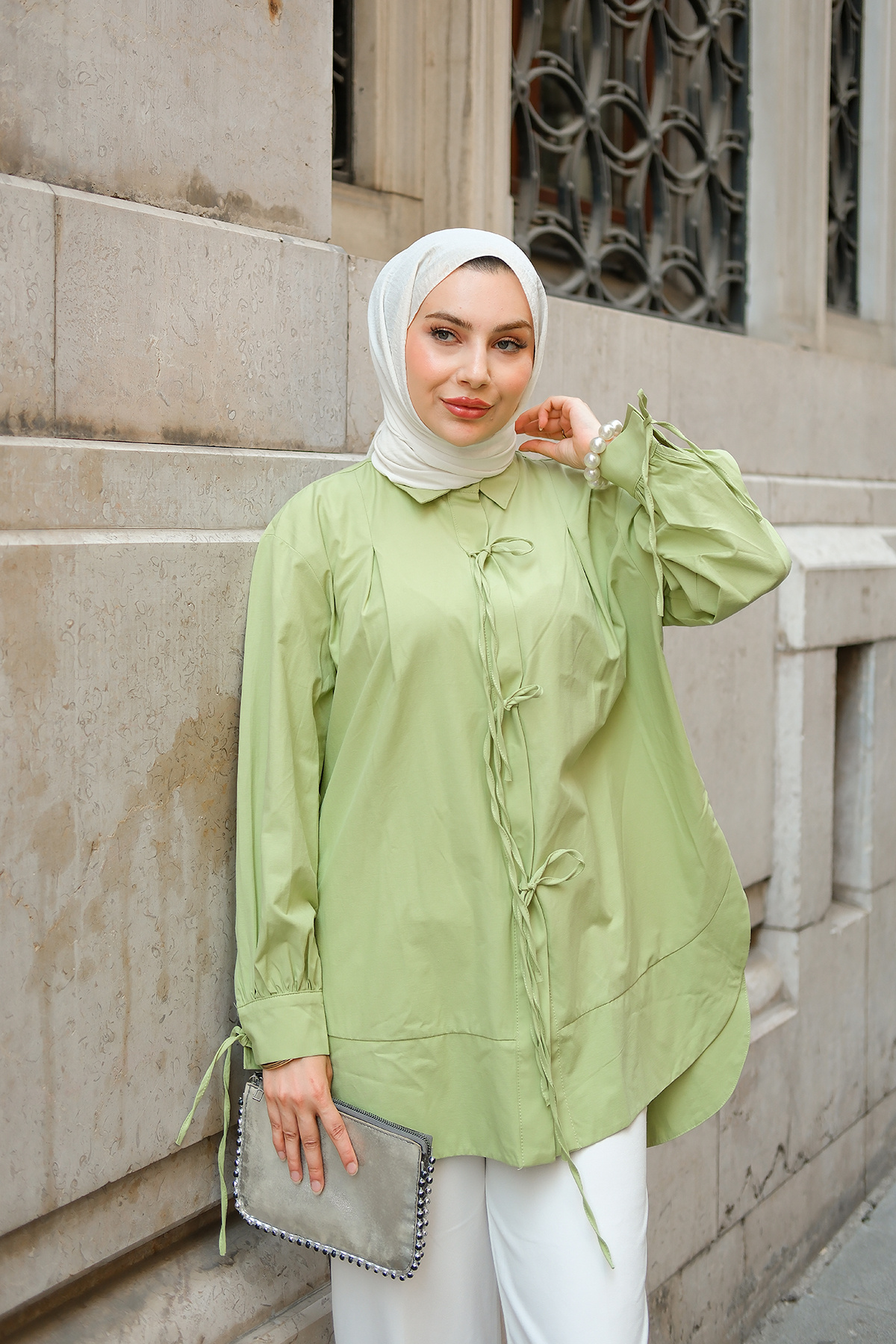 Kadın Şampanya Hafif Dökümlü Saten Yüzeyli Gömlek DD00990 Kadın Şampanya Hafif Dökümlü Saten Yüzeyli Gömlek DD00990 44