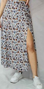 Desenli Beyaz Bol Kesim Yırtmaçlı Etek Desenli Beyaz Bol Kesim Yırtmaçlı Etek YB0001 2XL
