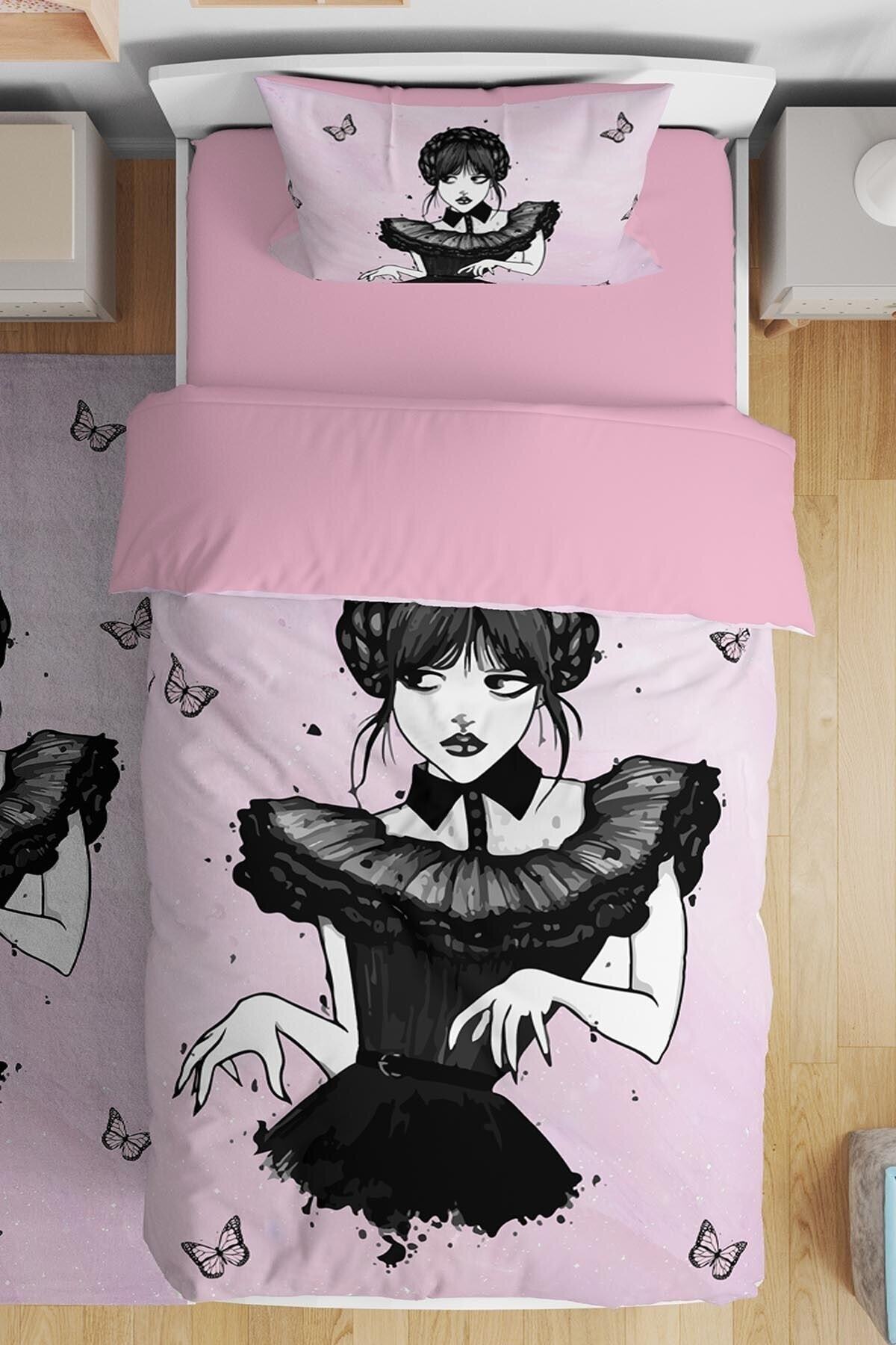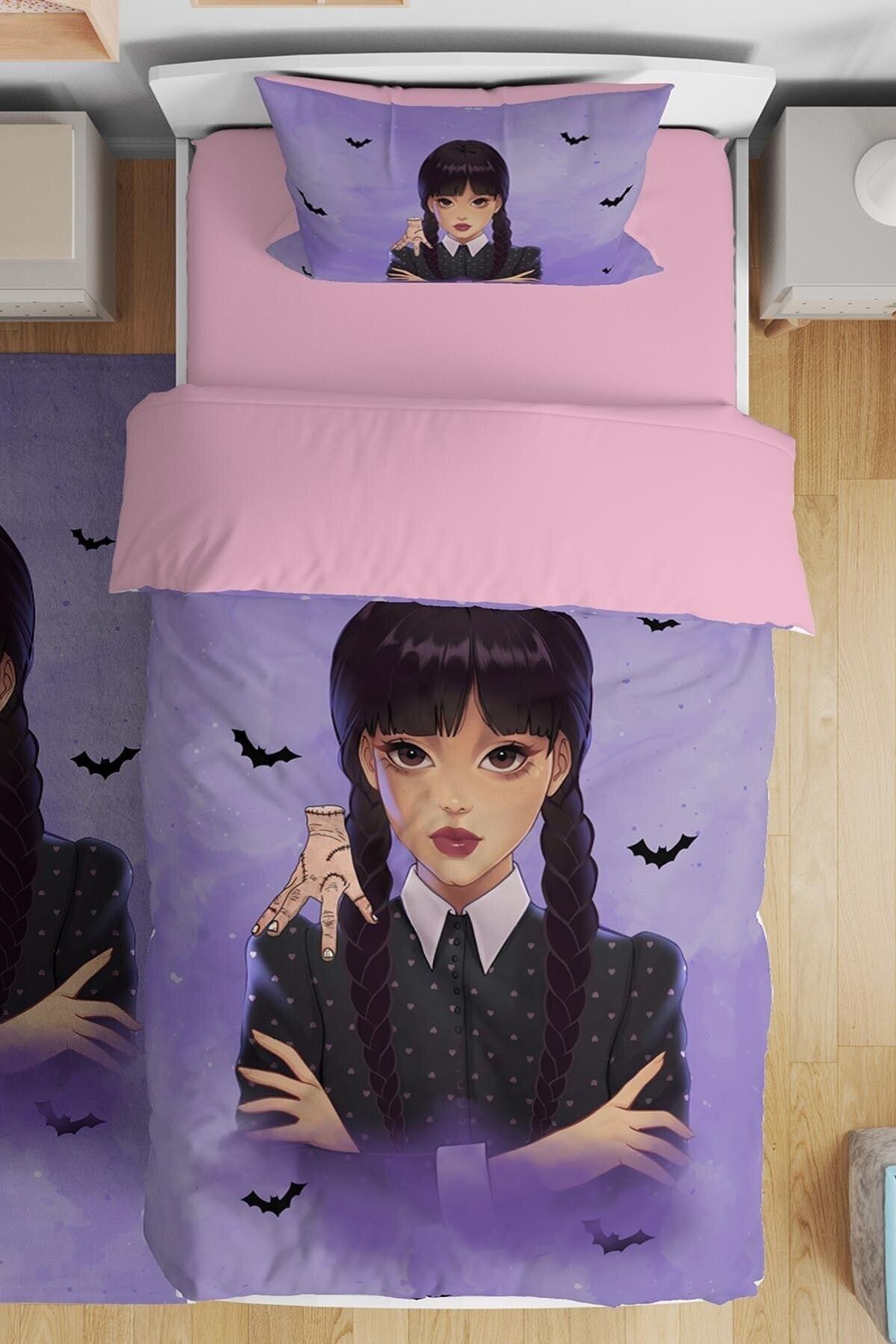 Yarasa Wednesday Addams Desenli Tek Kişilik Bebek Çocuk Nevresim Takımı Yarasa Wednesday Addams Desenli Tek Kişilik Bebek Çocuk Nevresim Takımı evnev00167 تک سایز