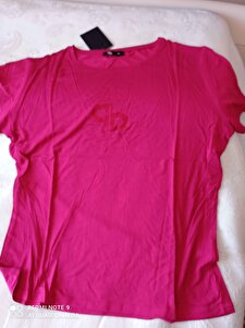 Kadın Bisiklet Yaka Taş Detaylı Kısa Kollu Tişört-fuşya Purple Kadın Bisiklet Yaka Taş Detaylı Kısa Kollu Tişört-fuşya Purple 5027001 M