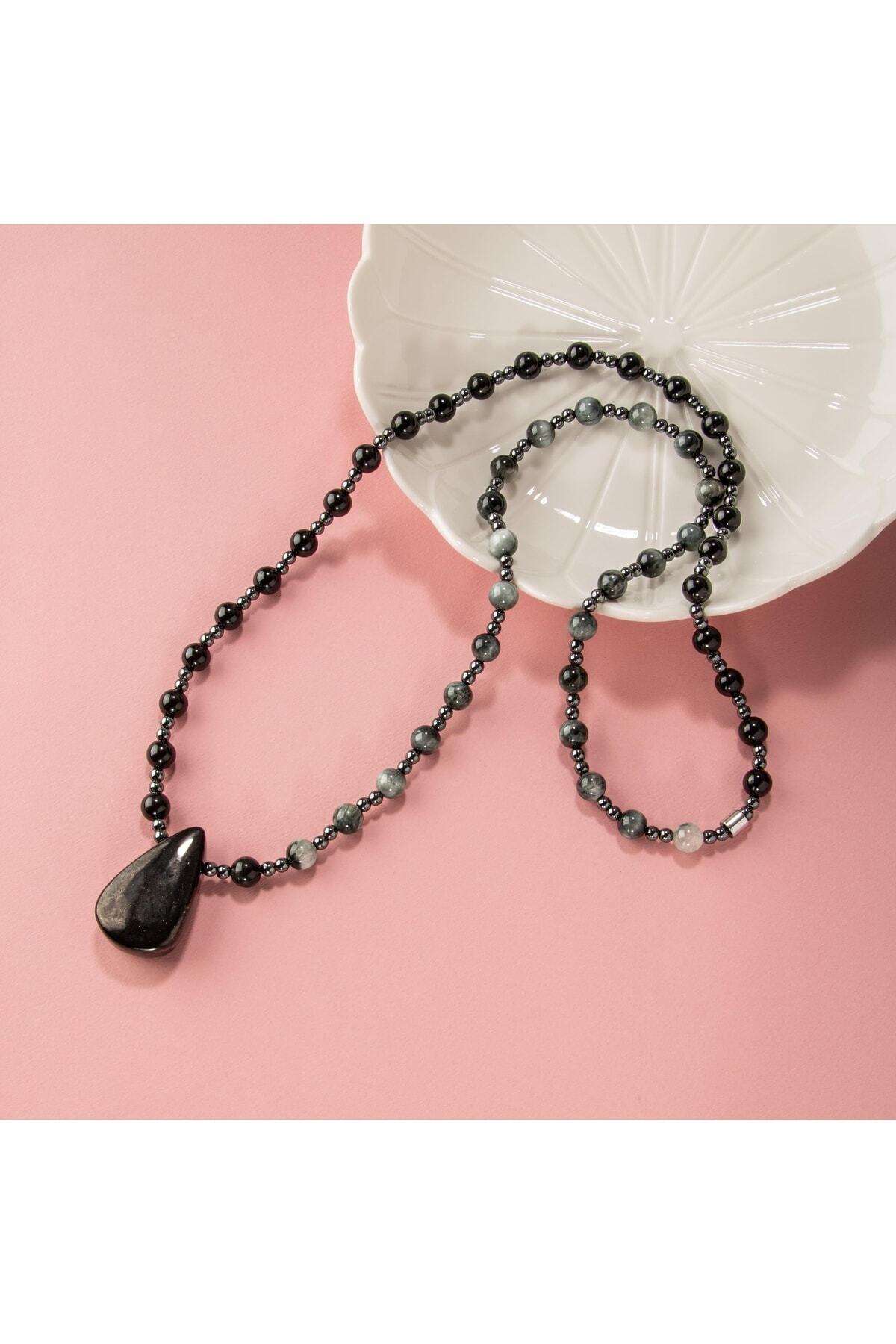 Şungit-kedi Gözü-hematit Doğal Taş Kolye Şungit-kedi Gözü-hematit Doğal Taş Kolye KL-0672 85 CM
