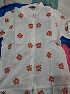 Kadın Papatya Turuncu Kol Katlamalı Keten Gömlek GML-19000825 Kadın Papatya Turuncu Kol Katlamalı Keten Gömlek GML-19000825 XL