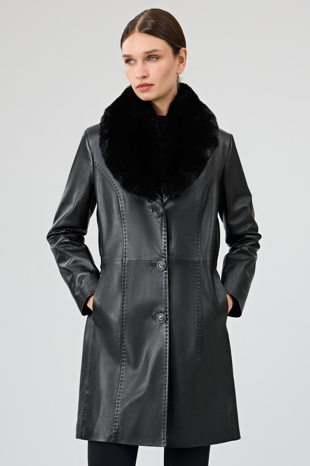 Kadın Lacivert Hakiki Deri Uzun Manto Kadın Lacivert Hakiki Deri Uzun Manto B-41 2XL