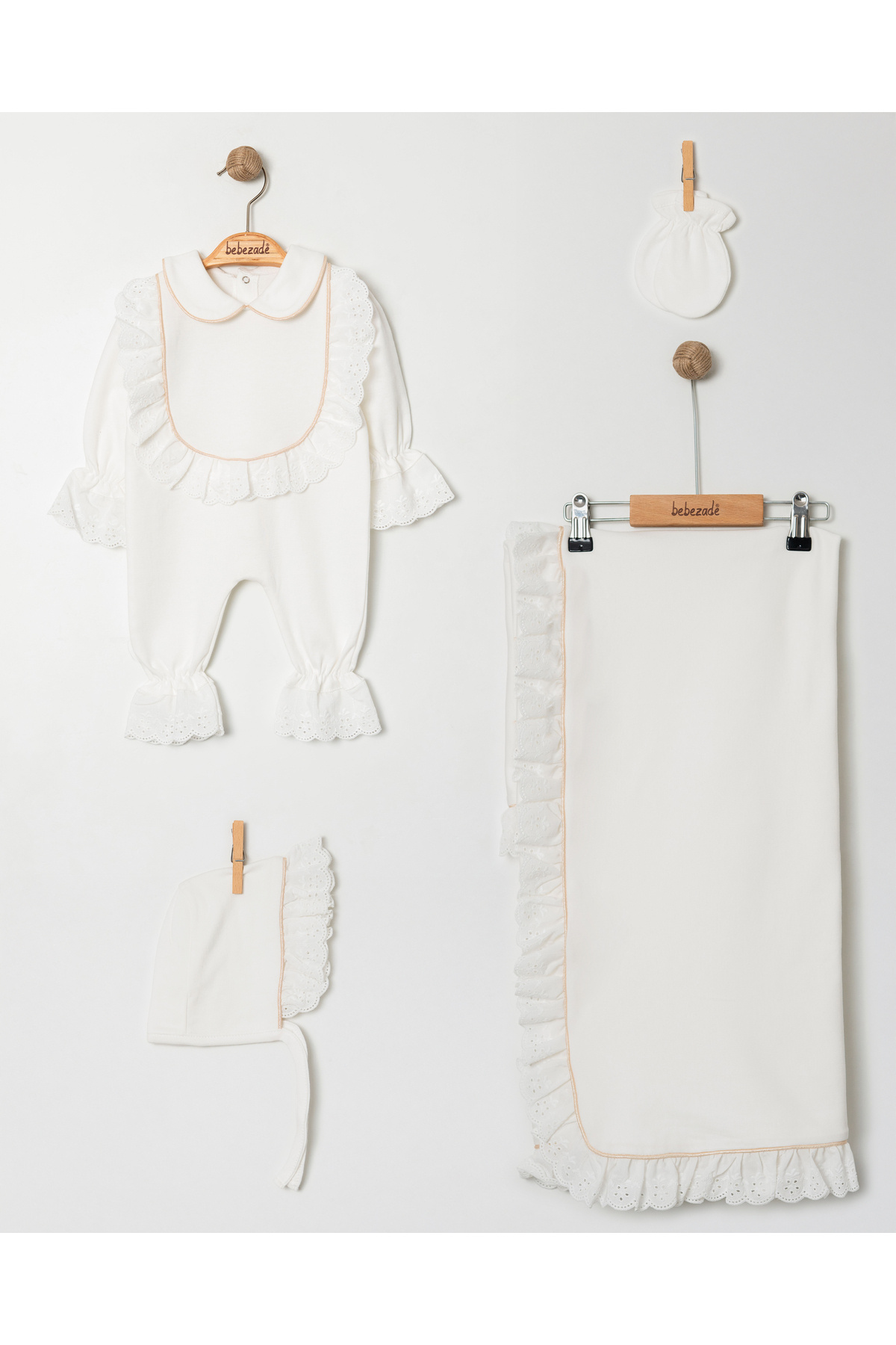 Kız Bebek Ekru Renkli Fisto Dantelli Tulum Kız Bebek Ekru Renkli Fisto Dantelli Tulum 19213 3-6 AY