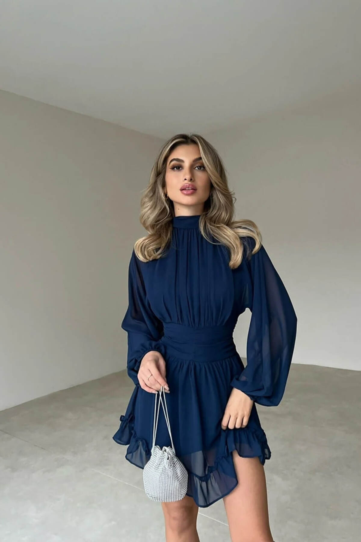 Sırt Dekolteli Şifon Kumaş Astarlı Elbise Sırt Dekolteli Şifon Kumaş Astarlı Elbise 47190 L