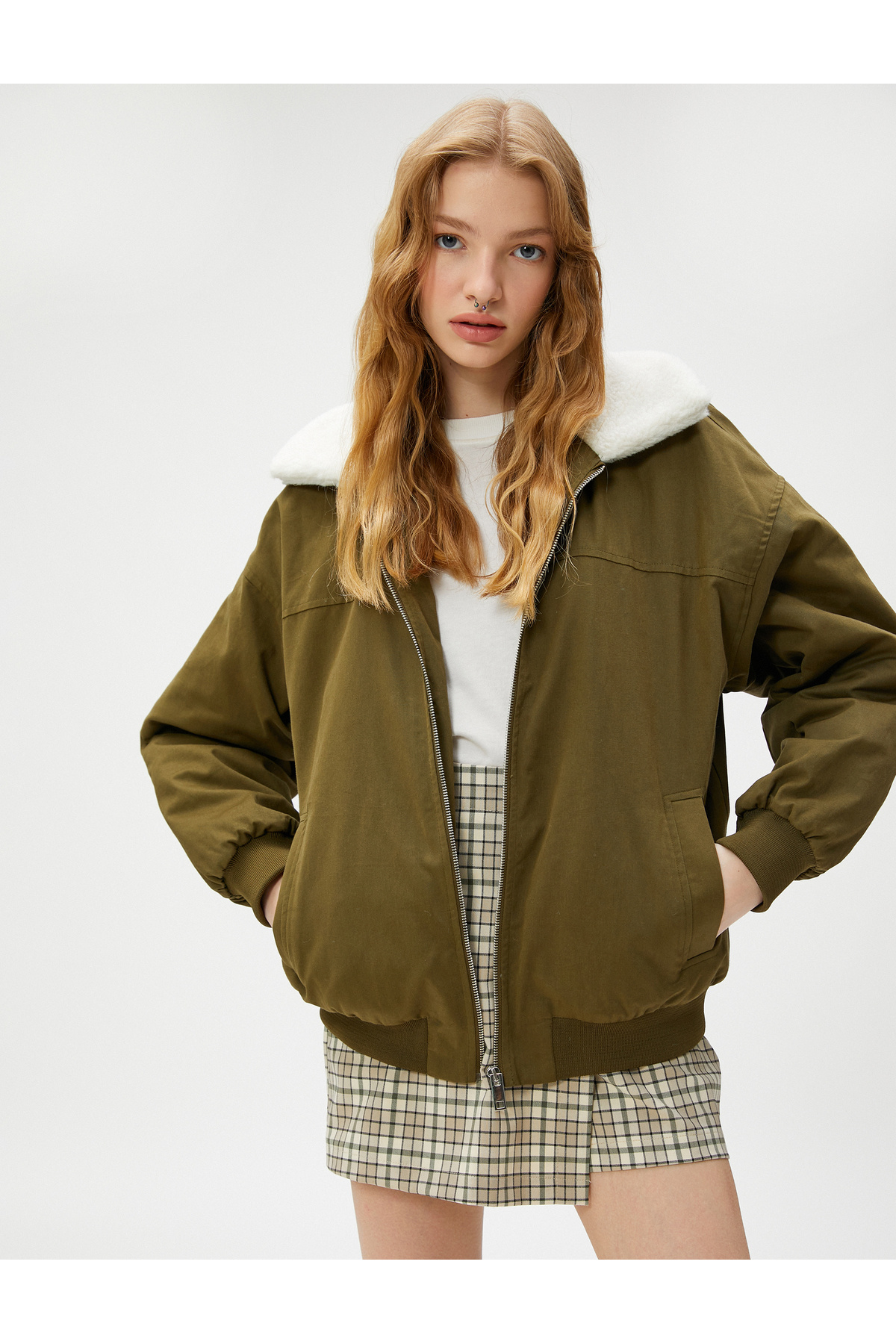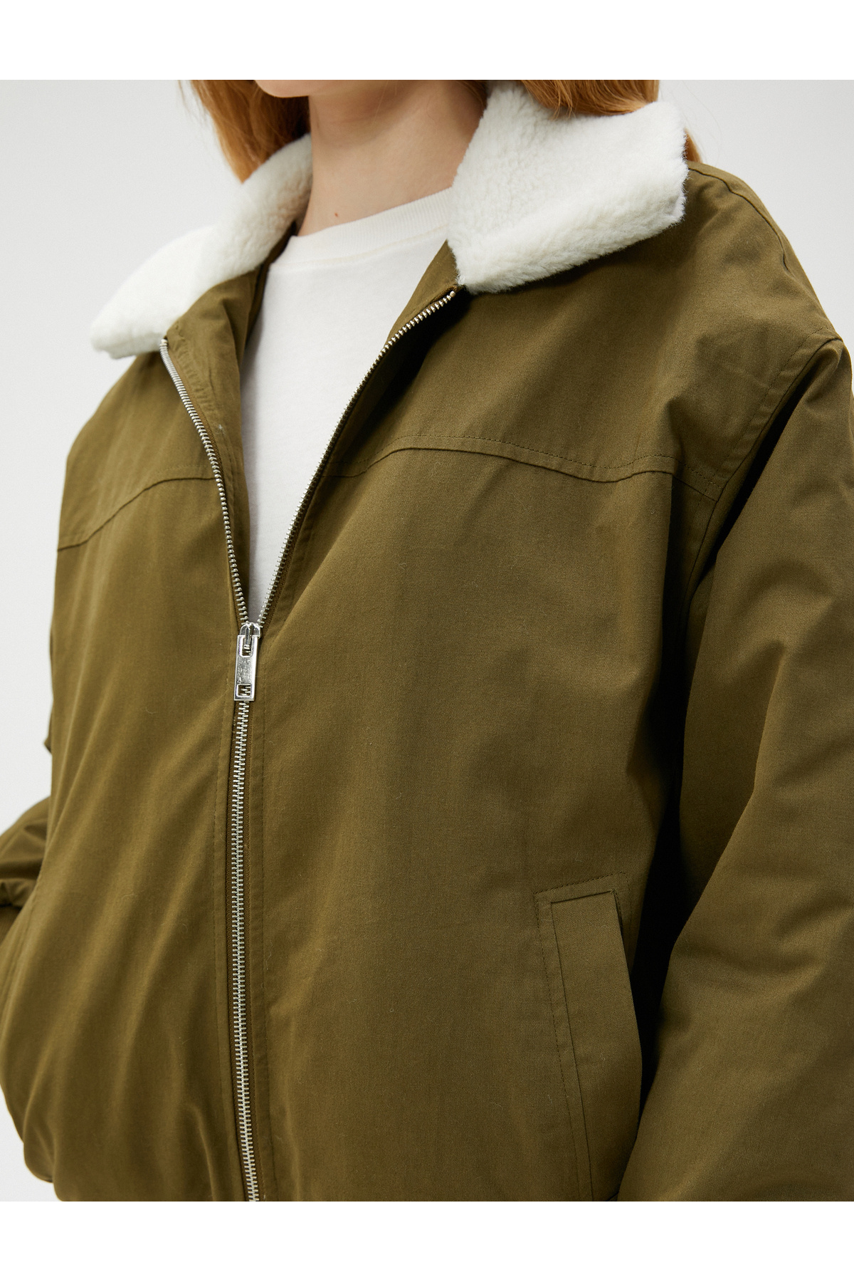 Fermuarlı Ceket Yakası Suni Kürklü Cep Detaylı Pamuklu Fermuarlı Ceket Yakası Suni Kürklü Cep Detaylı Pamuklu 4WAL20081IW 42