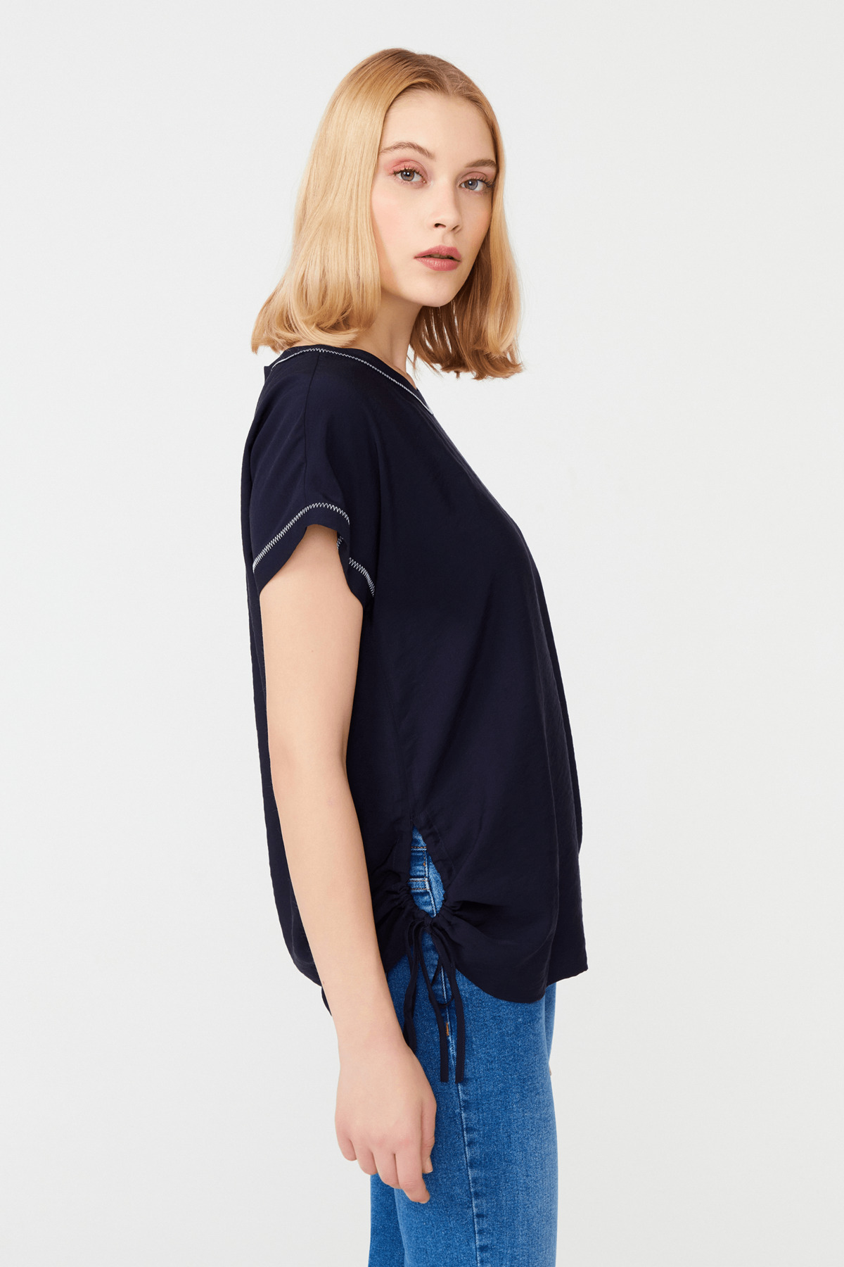 Yanları Büzgülü Düşük Kollu Bluz Yanları Büzgülü Düşük Kollu Bluz 23Y111182019 46