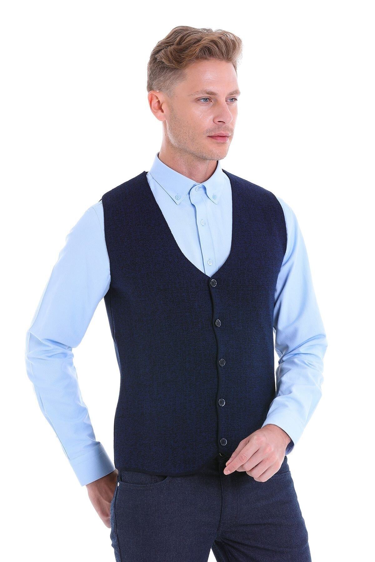 Erkek Siyah Slim Fit Dar Kesim V Yaka Desenli Klasik Yelek Erkek Siyah Slim Fit Dar Kesim V Yaka Desenli Klasik Yelek 4A3400000001 56