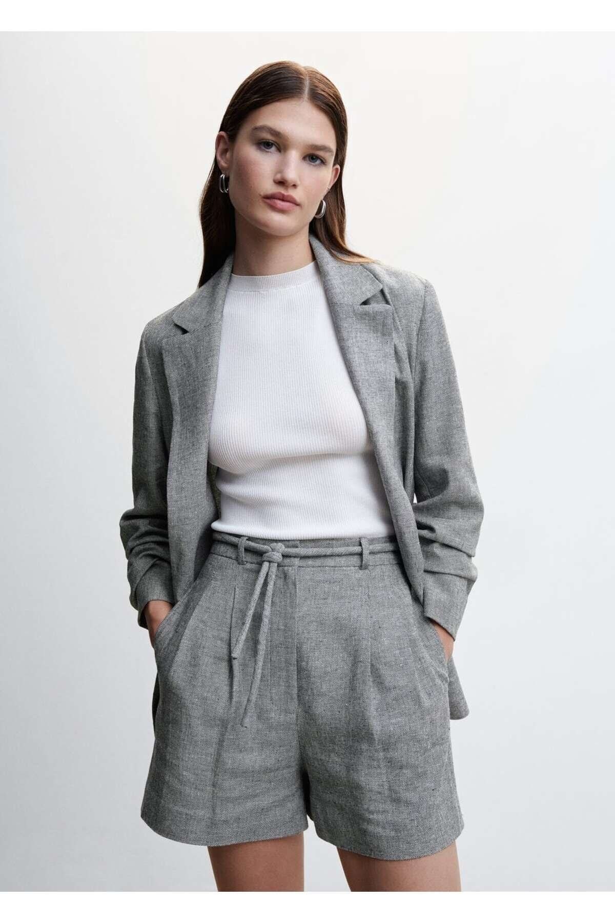 Kemerli Keten Şort Kemerli Keten Şort 47027881 44