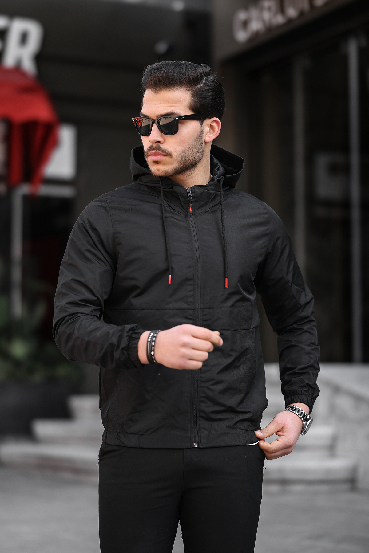 Erkek Siyah Dik Yaka Gizli Kapüşon Su Ve Rüzgar Geçirmez Mevsimlik Ceket & Yağmurluk Erkek Siyah Dik Yaka Gizli Kapüşon Su Ve Rüzgar Geçirmez Mevsimlik Ceket & Yağmurluk YeniMevsimlik 2XL