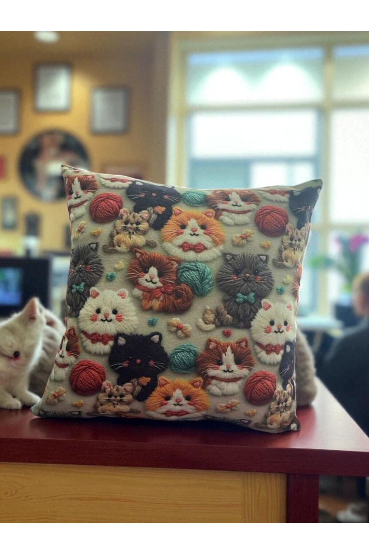 Çeşitli Kedi Desenli Modern Çift Taraflı Raşel Örme Yastık Kırlent Kılıfı Çeşitli Kedi Desenli Modern Çift Taraflı Raşel Örme Yastık Kırlent Kılıfı Sonil-K-5651 55 x 55