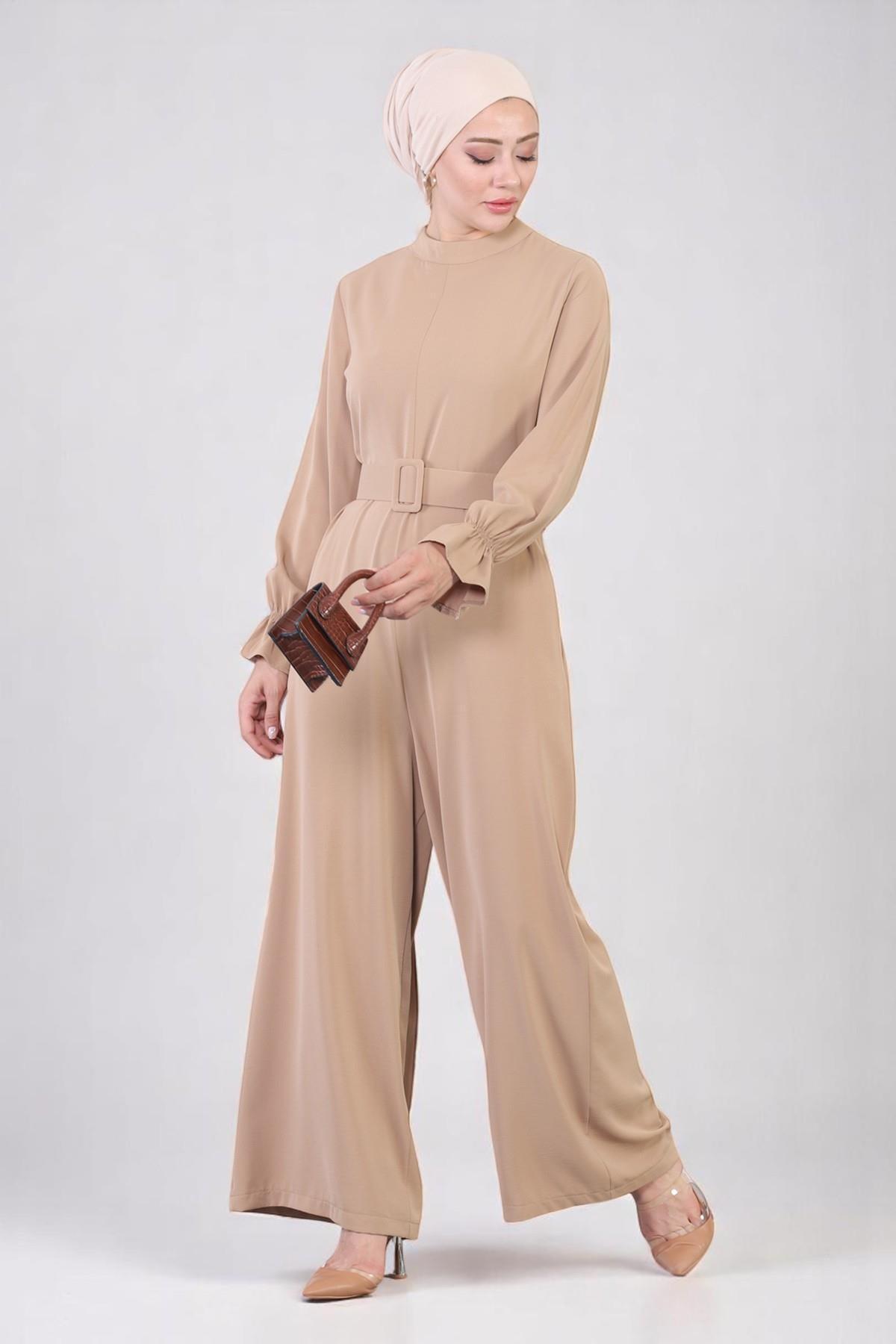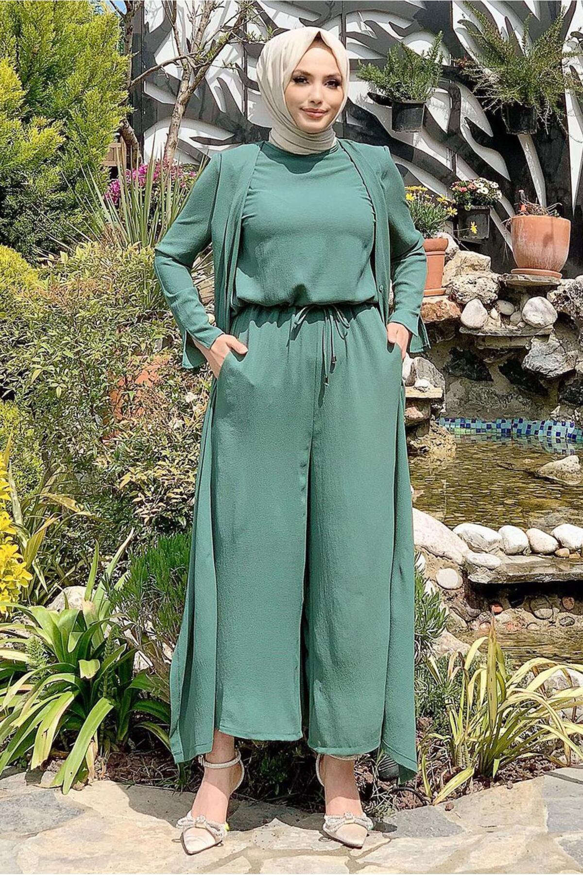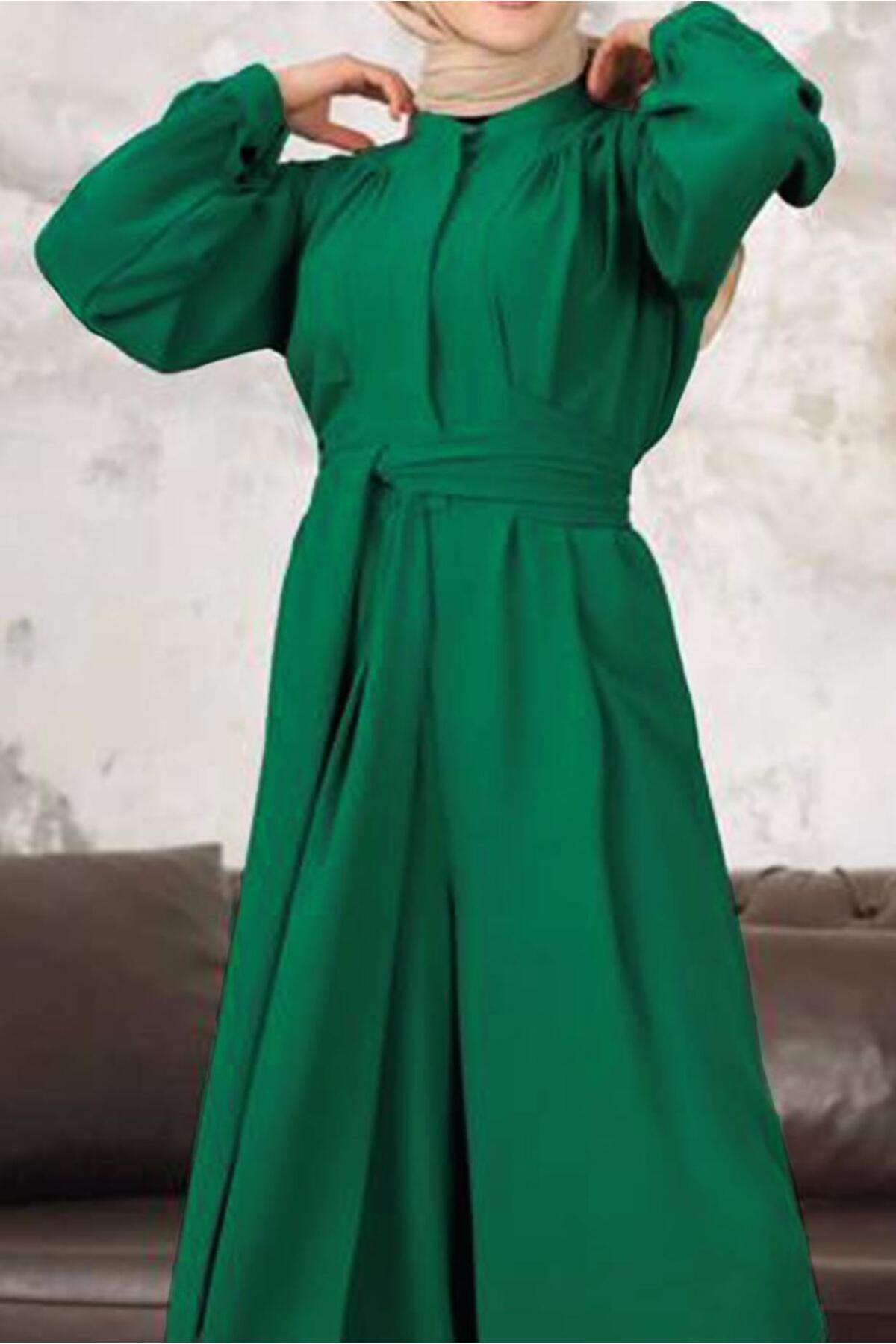 KADIN YEŞİL KUŞAKLI GENİŞ PAÇA TULUM T 40201 KADIN YEŞİL KUŞAKLI GENİŞ PAÇA TULUM T 40201 23YELBTR40201 40
