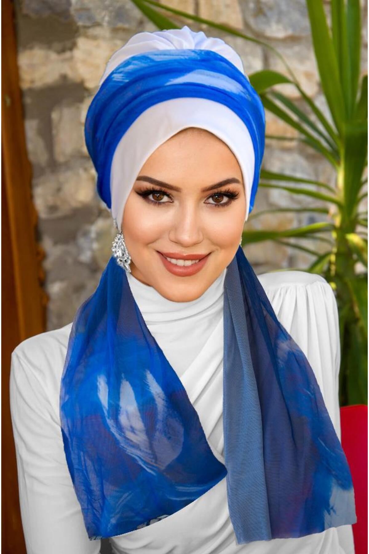 Lacivert Zebra Fularlı Bone - 40600 Lacivert Zebra Fularlı Bone - 40600 Standart