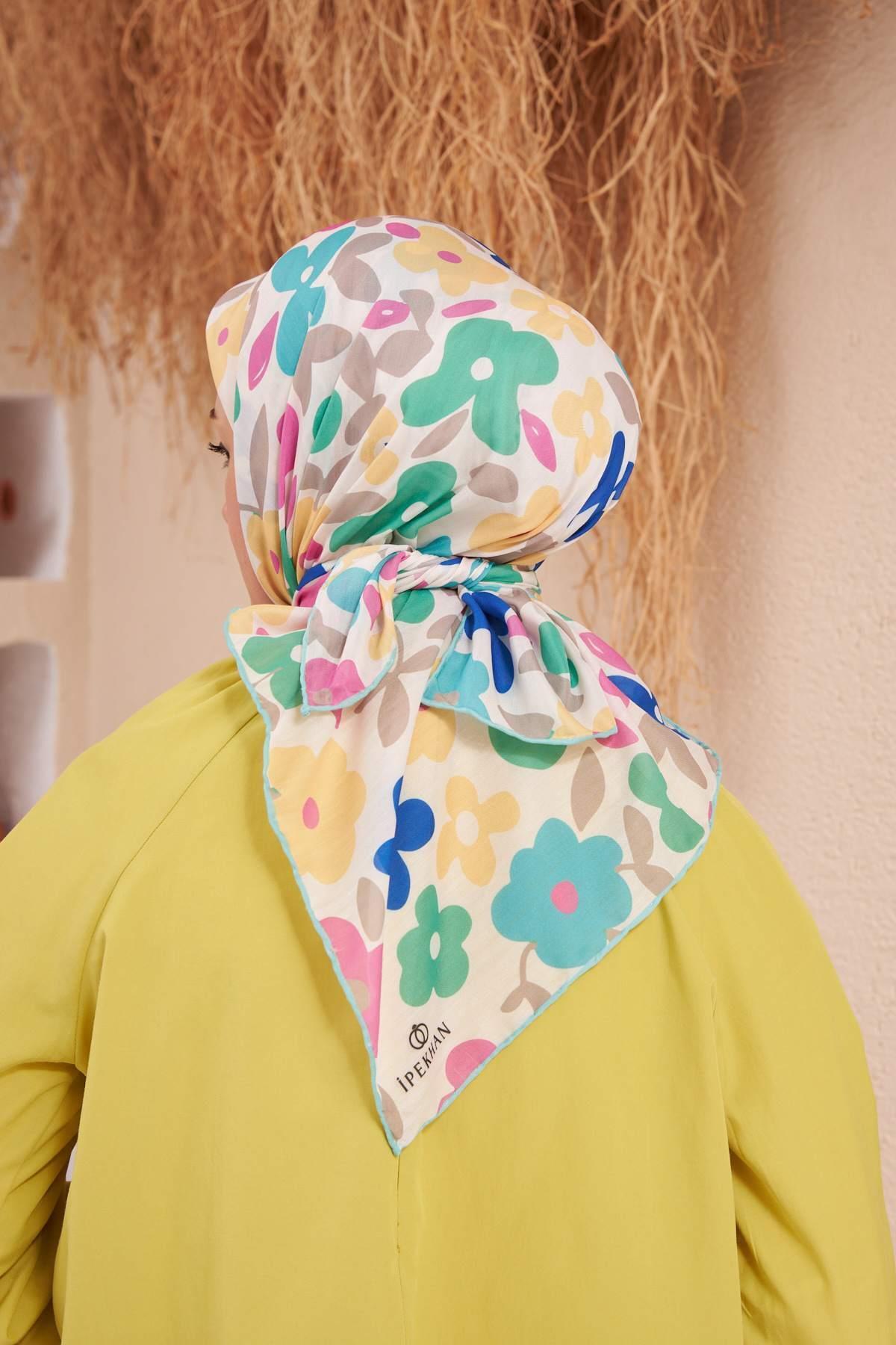 İpekhan Flowers Serisi Turkuaz Pamuk Viskon Eşarp 1122-04 İpekhan Flowers Serisi Turkuaz Pamuk Viskon Eşarp 1122-04 90x90