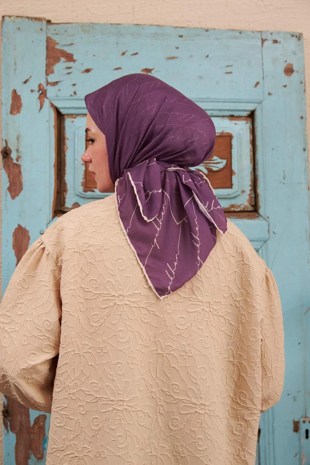 İpekhan Monogram Serisi Mor Pamuk Viskon Eşarp 1118-06 İpekhan Monogram Serisi Mor Pamuk Viskon Eşarp 1118-06 90x90