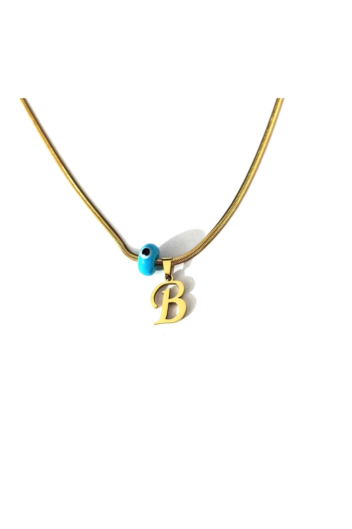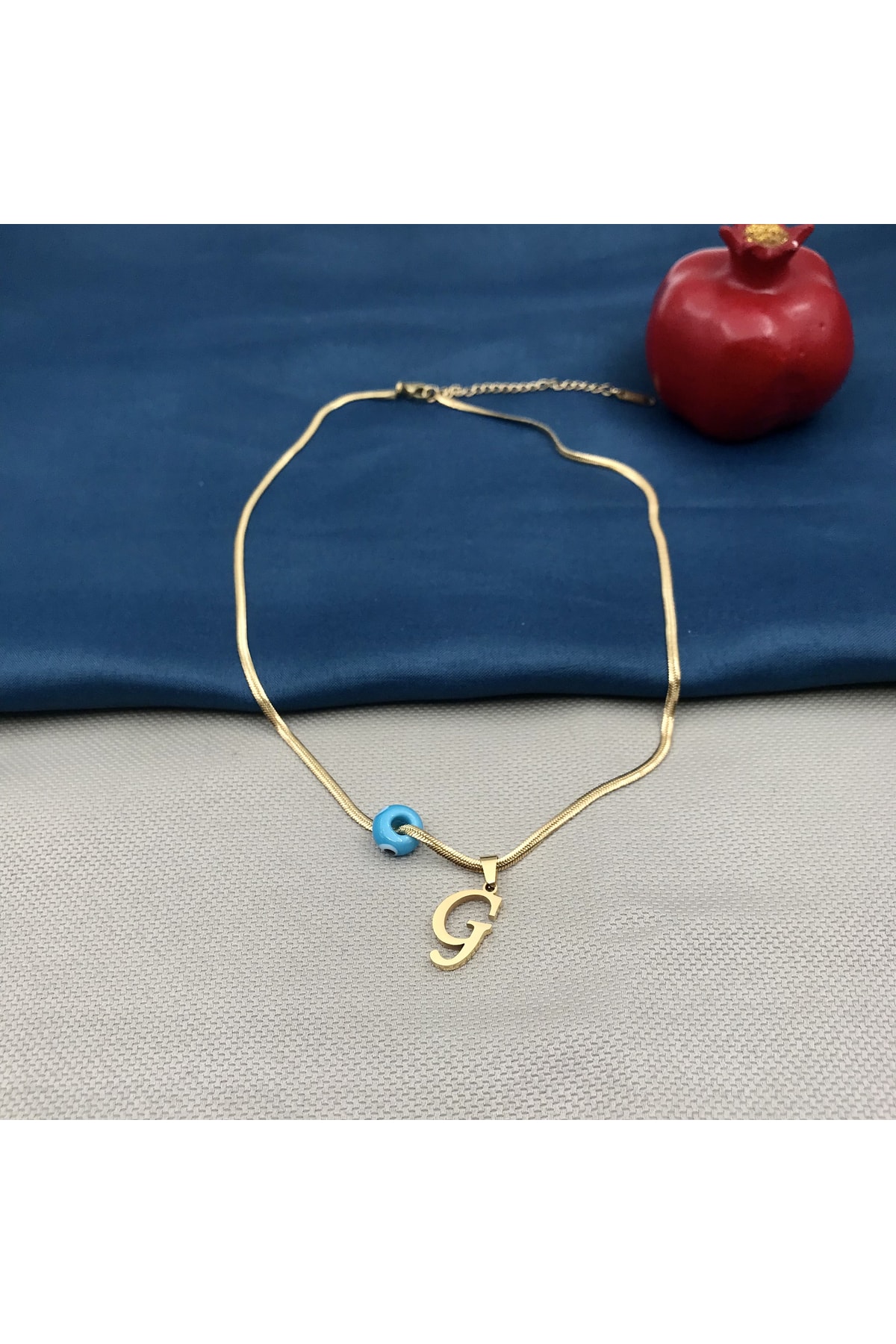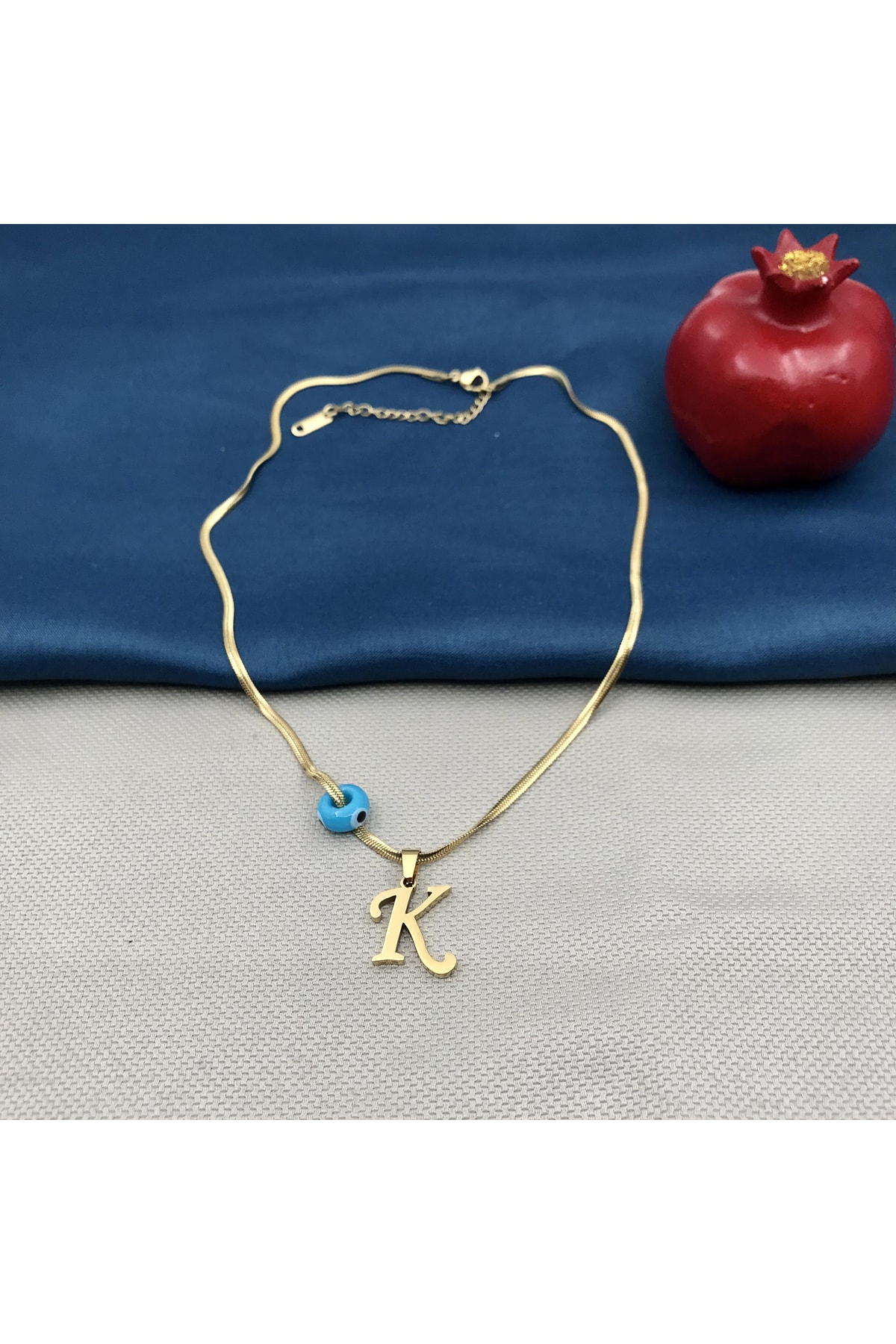 Kadın Çelik Gold Nazar Boncuklu Harf Kolye Kadın Çelik Gold Nazar Boncuklu Harf Kolye OPKL0115 تک سایز