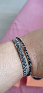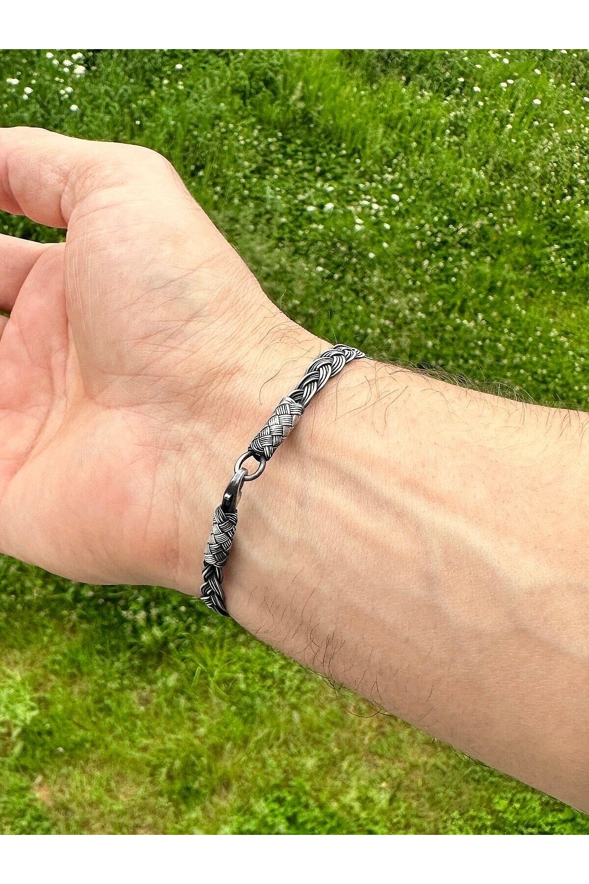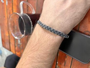 Gümüş Kazaziye Oksitli Örgü Bileklik Gümüş Kazaziye Oksitli Örgü Bileklik BIL024 20 cm