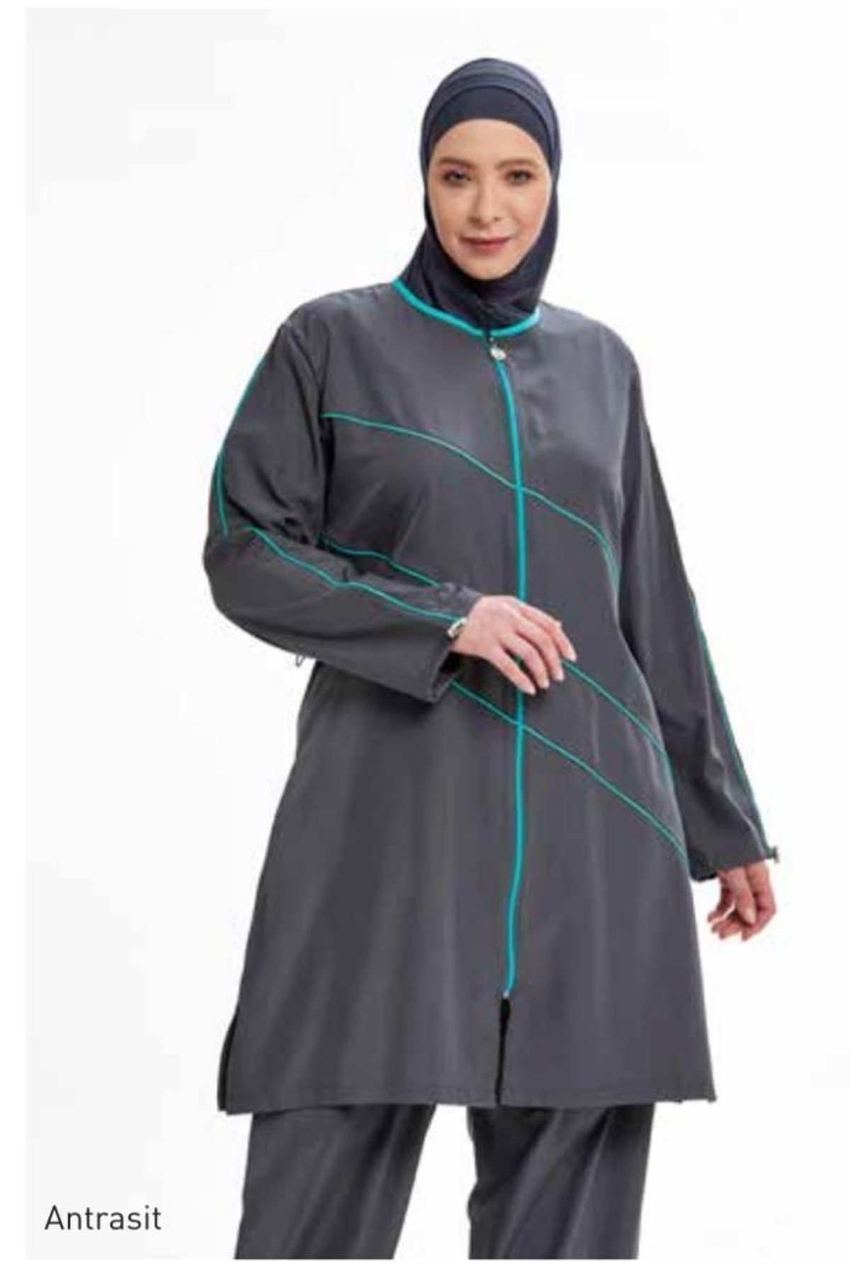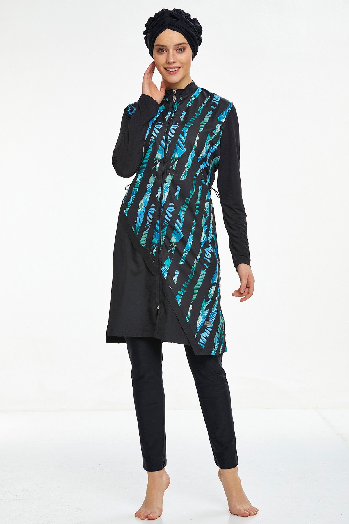 Desenli Fermuar Detaylı Paraşüt Kumaş Tesettür Mayo Desenli Fermuar Detaylı Paraşüt Kumaş Tesettür Mayo 1335 2XL