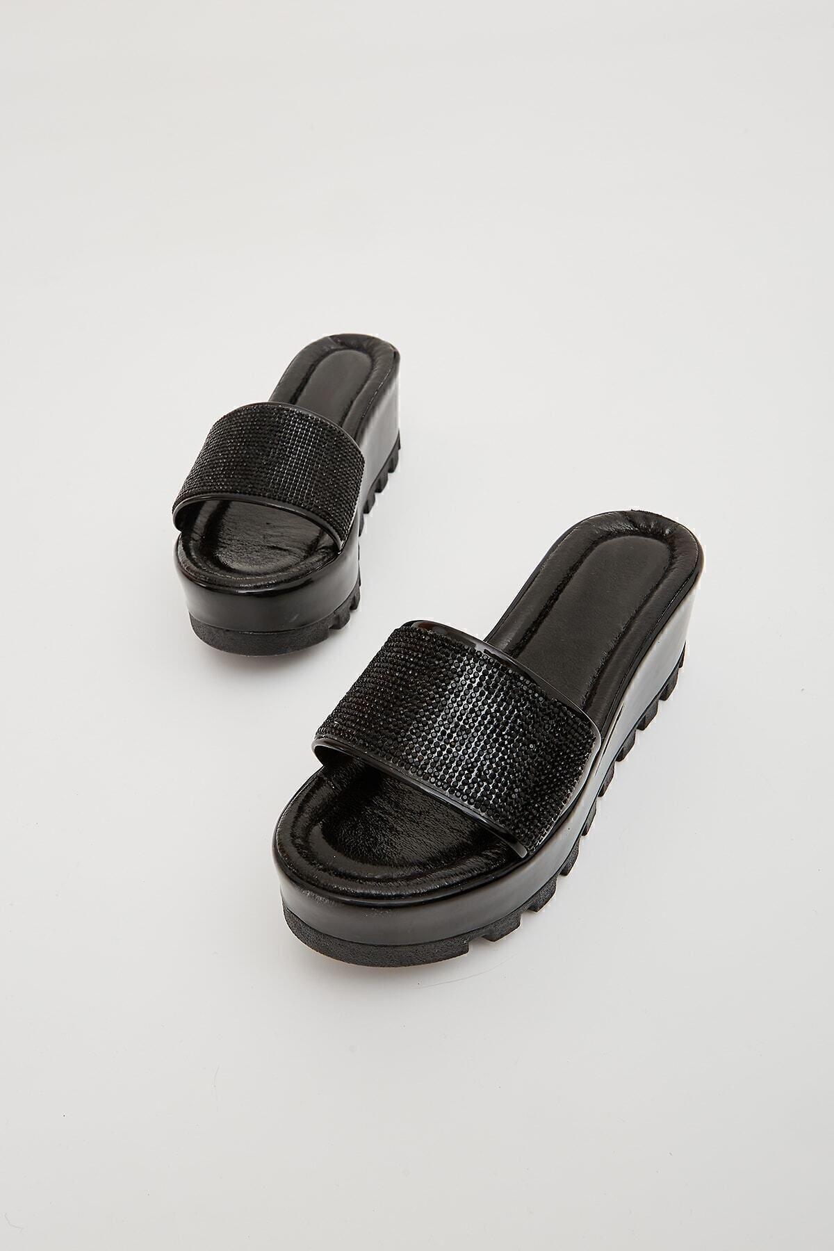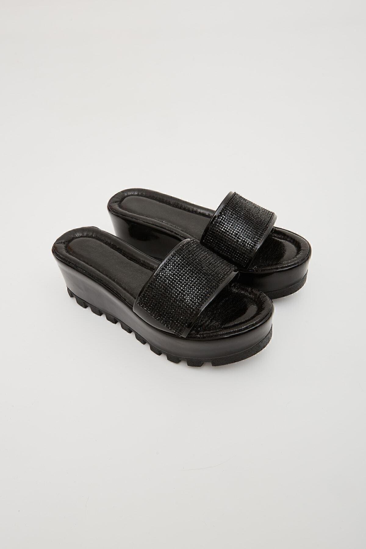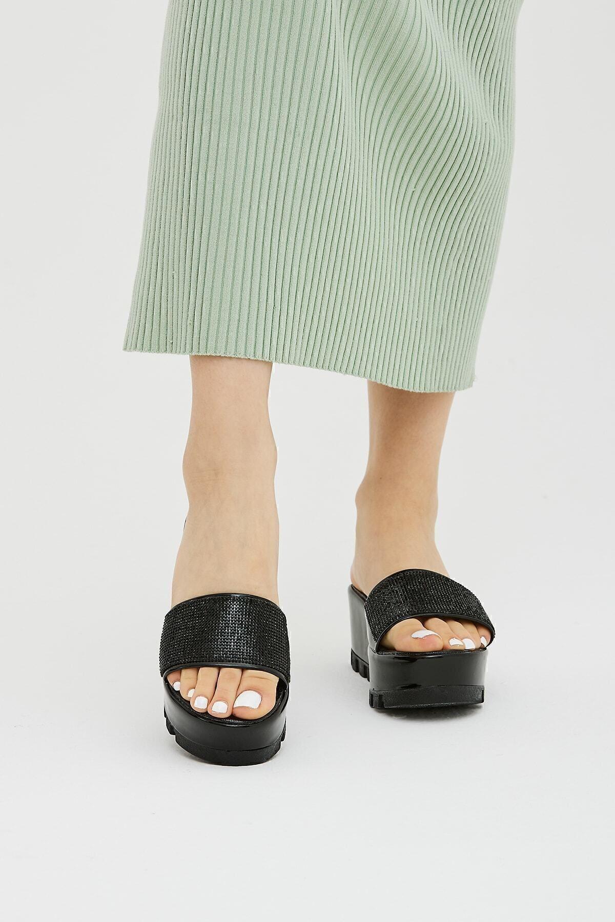 Siyah Siyah Taşlı Düz Dolgu Topuklu Kadın Terliği Yüksek Taban Terlik Siyah Siyah Taşlı Düz Dolgu Topuklu Kadın Terliği Yüksek Taban Terlik MD23028 40