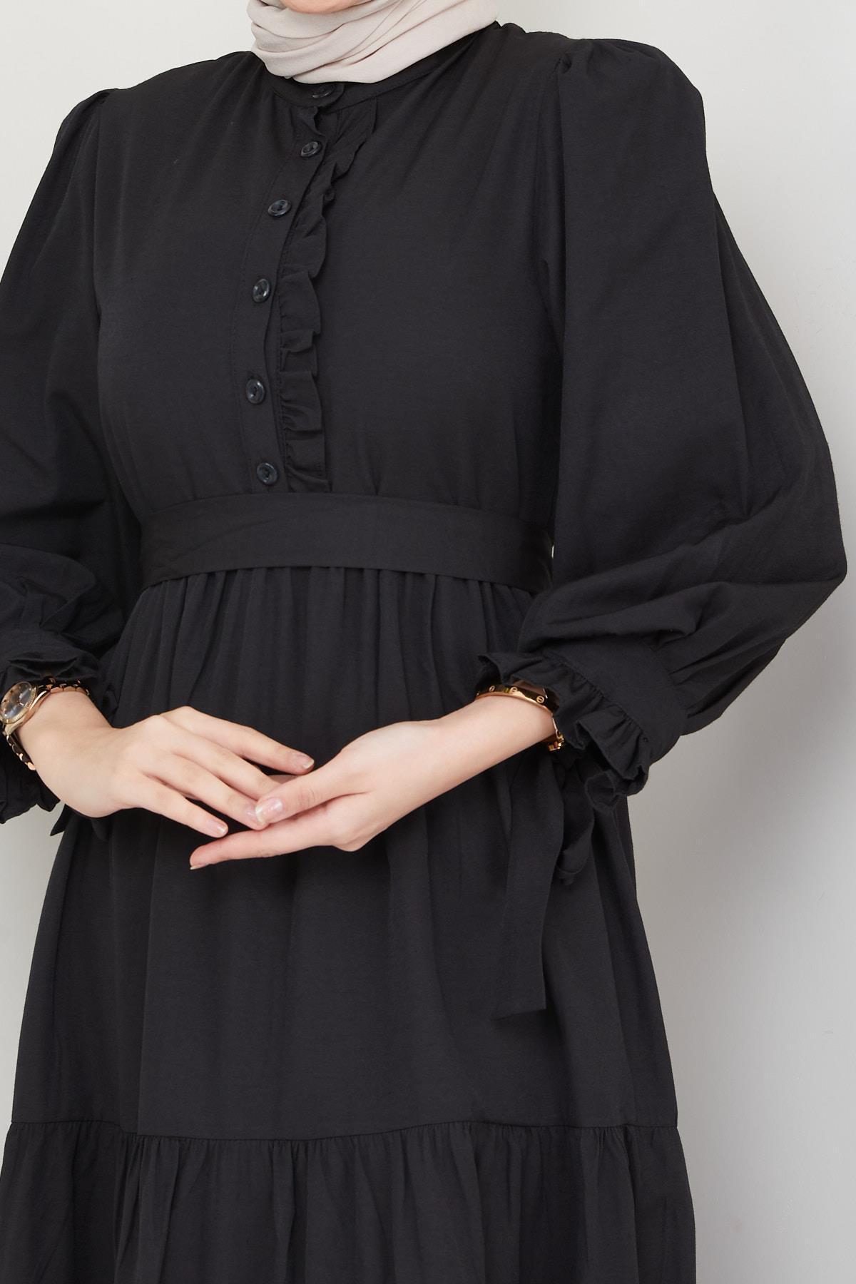 Önü Fırfırlı Kolu Bağlamalı Elbise Siyah Önü Fırfırlı Kolu Bağlamalı Elbise Siyah 2078 46