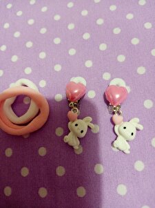 Kalpli Beyaz Tavşan Sallantılı Klipsli Çocuk Küpesi - Deliksiz Küpe Kalpli Beyaz Tavşan Sallantılı Klipsli Çocuk Küpesi - Deliksiz Küpe minik kalpli kalpli tavşan تک سایز