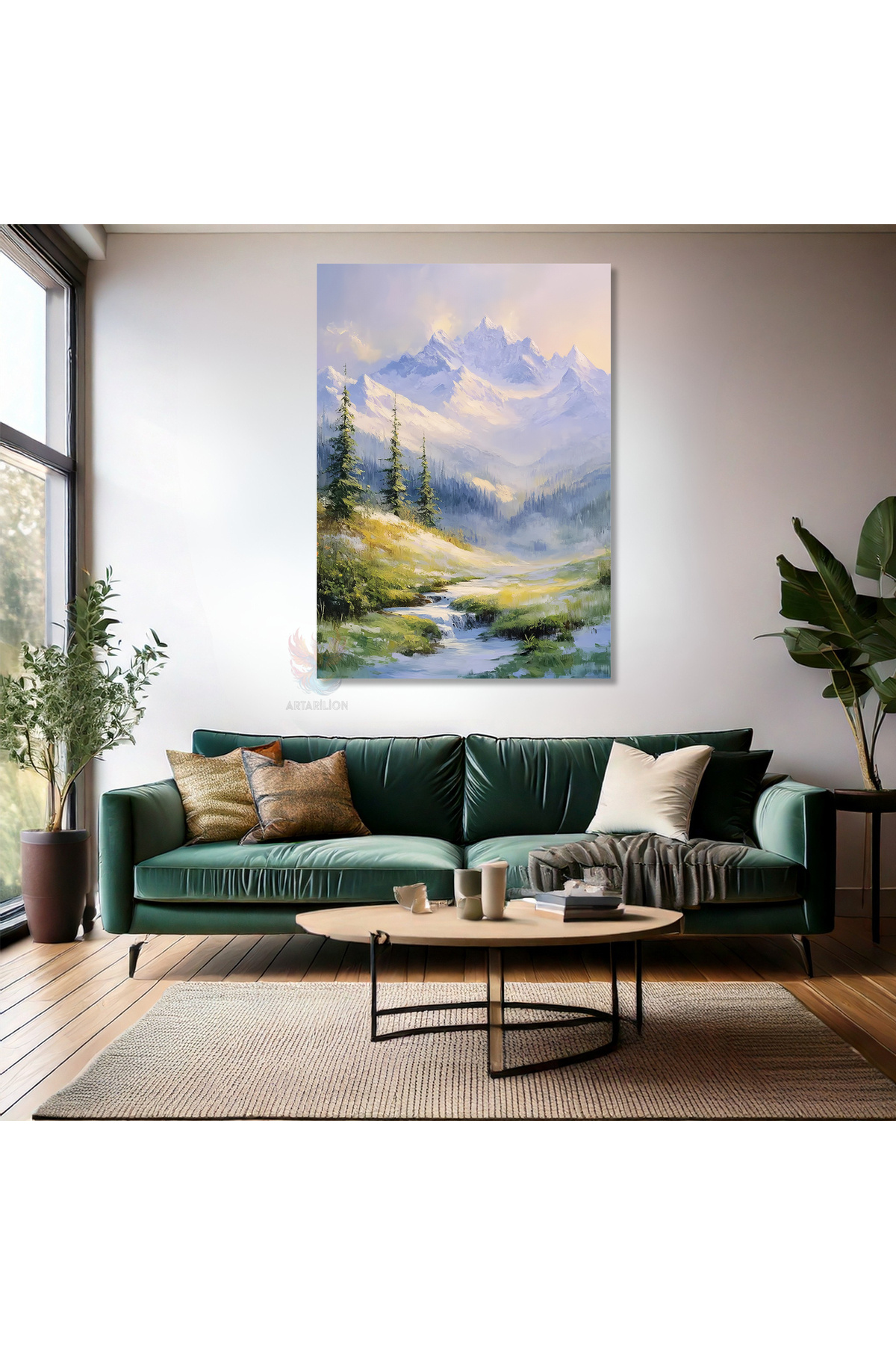 Karlı Dağ Manzaralı Orman Orijinal Yağlı Boya Tablo Karlı Dağ Manzaralı Orman Orijinal Yağlı Boya Tablo TD1162 50 x 50