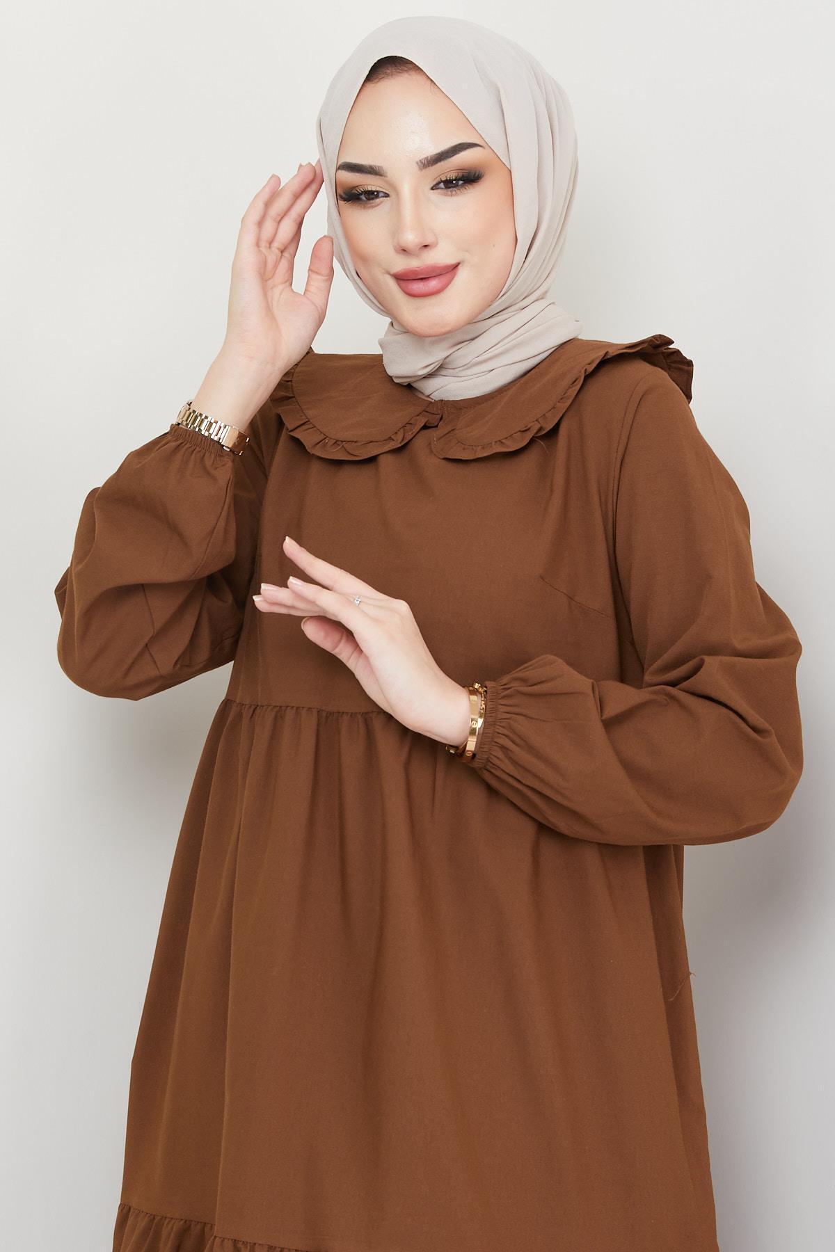 Bebe Yaka Tesettür Elbise Kahverengi Bebe Yaka Tesettür Elbise Kahverengi 2080 48