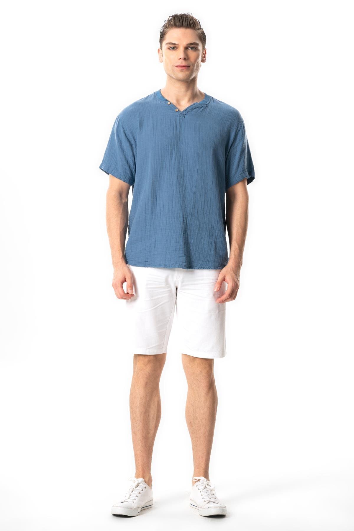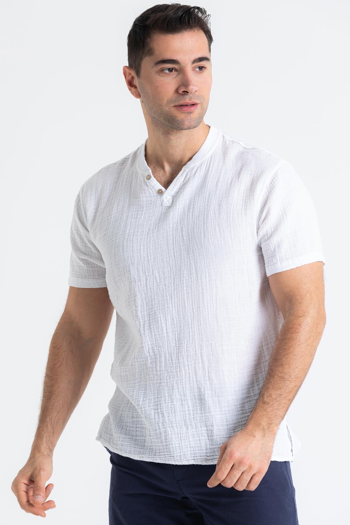 Kısa Kol Erkek Ribanalı Yazlık Müslin Tshirt Beyaz Byz Kısa Kol Erkek Ribanalı Yazlık Müslin Tshirt Beyaz Byz 581.01 3XL