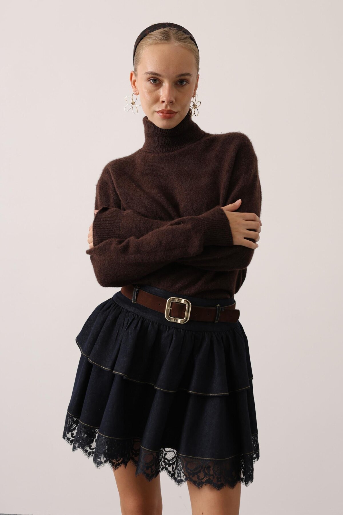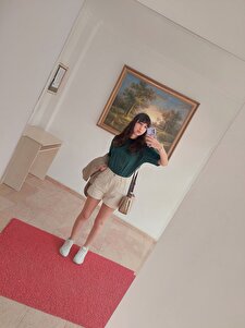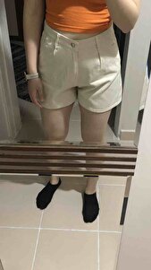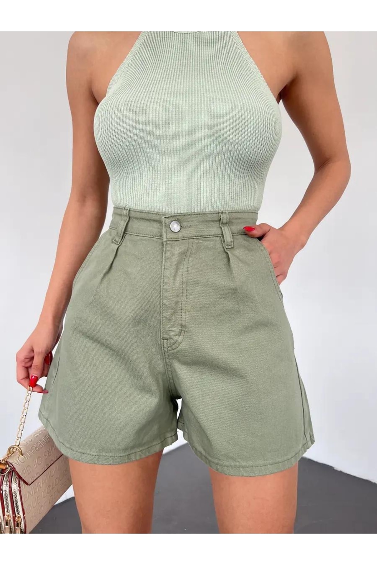 Yüksek Bel Geniş Paça Pileli Cepli Kot Şort Bej Yüksek Bel Geniş Paça Pileli Cepli Kot Şort Bej Şortbermuda 42
