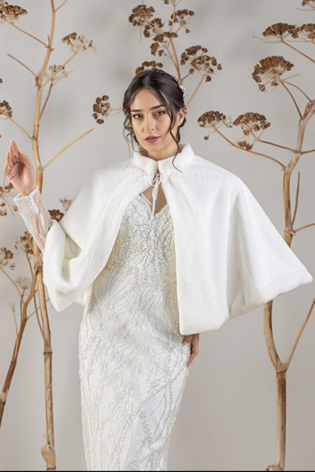 Beyaz Etol Gelin Bolero Broşlu Gelin Kürkü Beyaz Etol Gelin Bolero Broşlu Gelin Kürkü kurk12 تک سایز