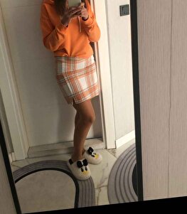 Kadın Bej Ekose Desen Dikişli Yırtmaçlı Mini Etek Kadın Bej Ekose Desen Dikişli Yırtmaçlı Mini Etek ARM-22Y001196 XL