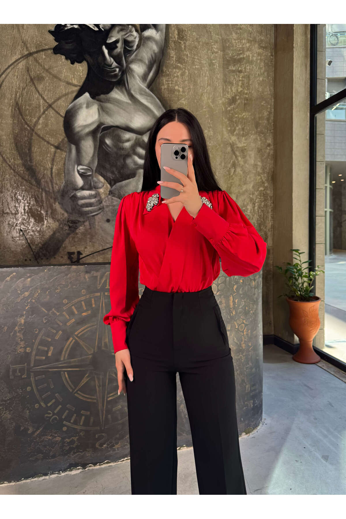 Kadın Kırmızı Uzun Kollu Şifon Gömlek Kadın Kırmızı Uzun Kollu Şifon Gömlek SATEN0020 42