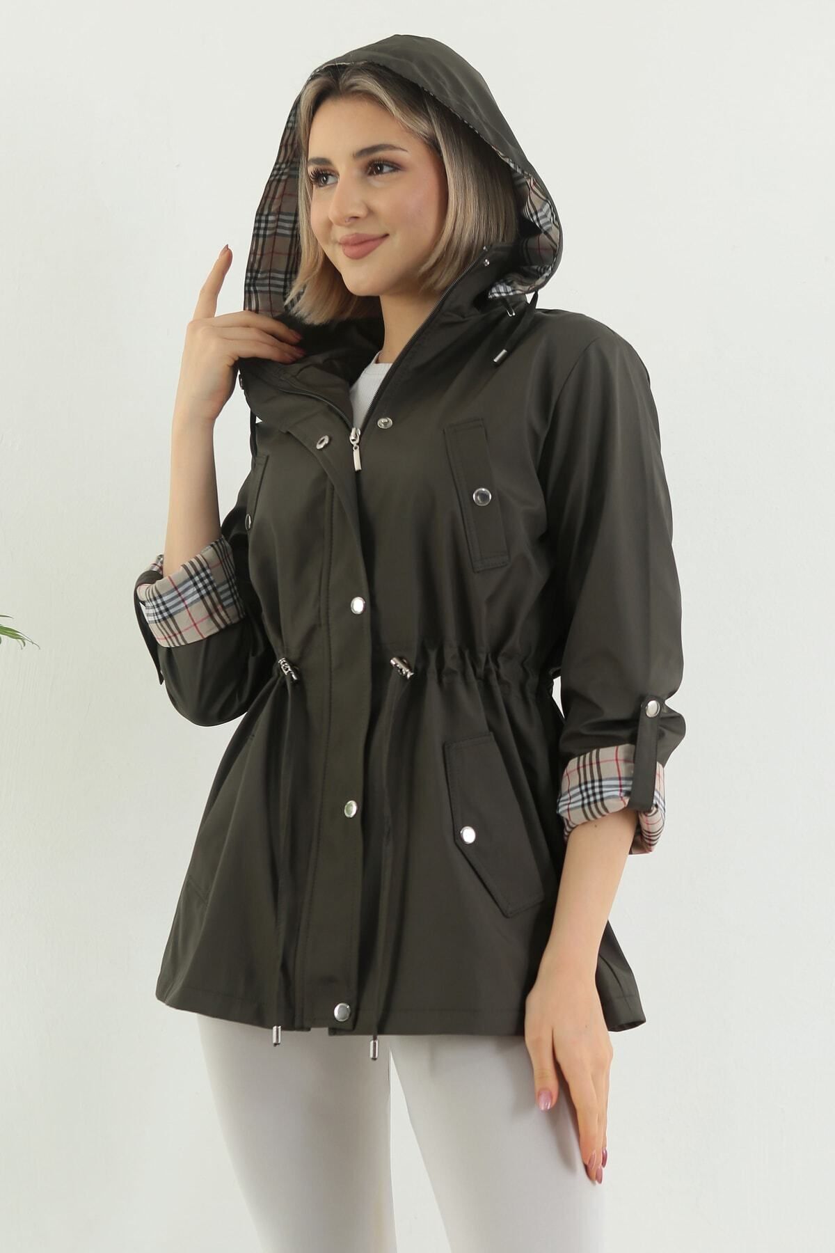 Kadın Suya Dayanıklı Trençkot Kapüşonlu Ekoseli Vizon Trençkot Bonded Kumaş Trençkot Kadın Suya Dayanıklı Trençkot Kapüşonlu Ekoseli Vizon Trençkot Bonded Kumaş Trençkot SRKN-K2801 58