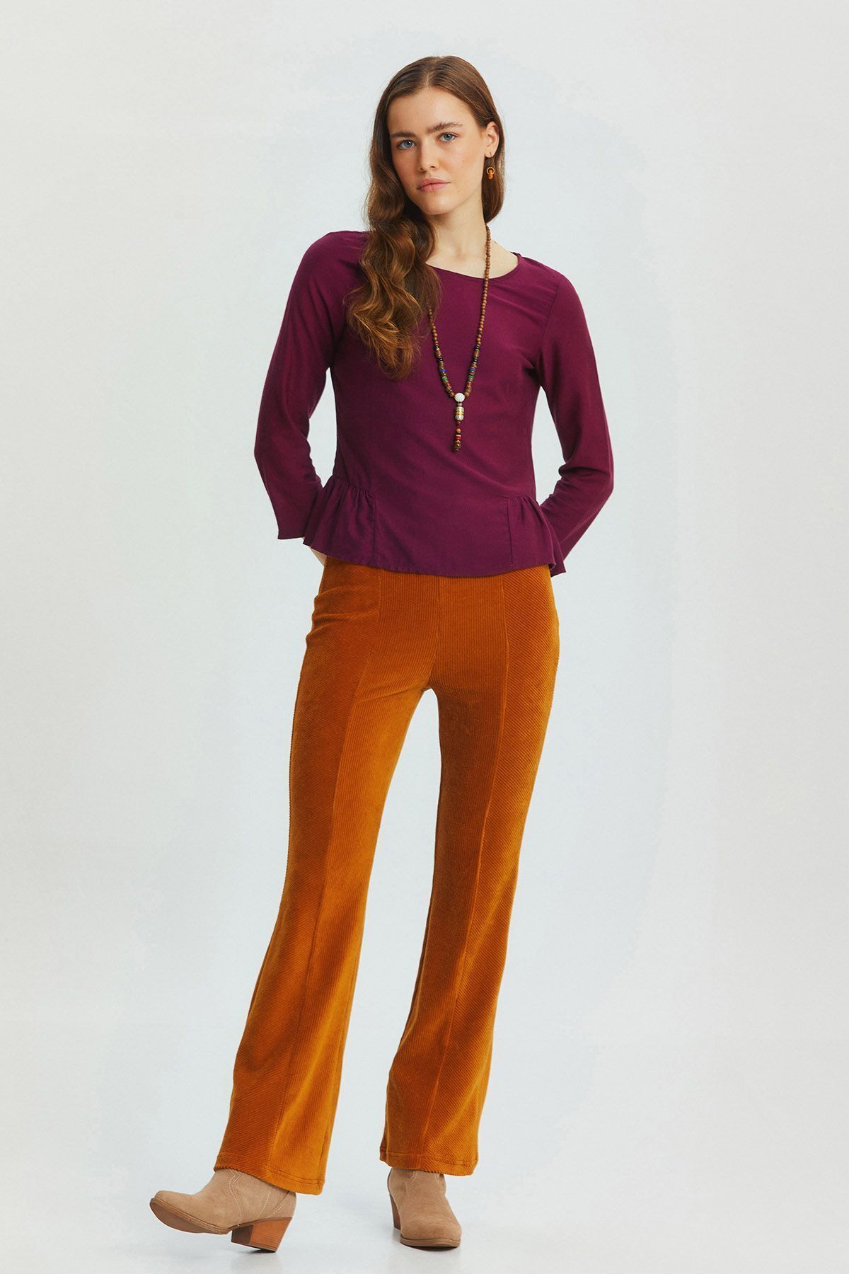 Kadın Fitilli Kadife Ispanyol Paça Pantolon Taba Rengi Kadın Fitilli Kadife Ispanyol Paça Pantolon Taba Rengi FTPNT1012 M