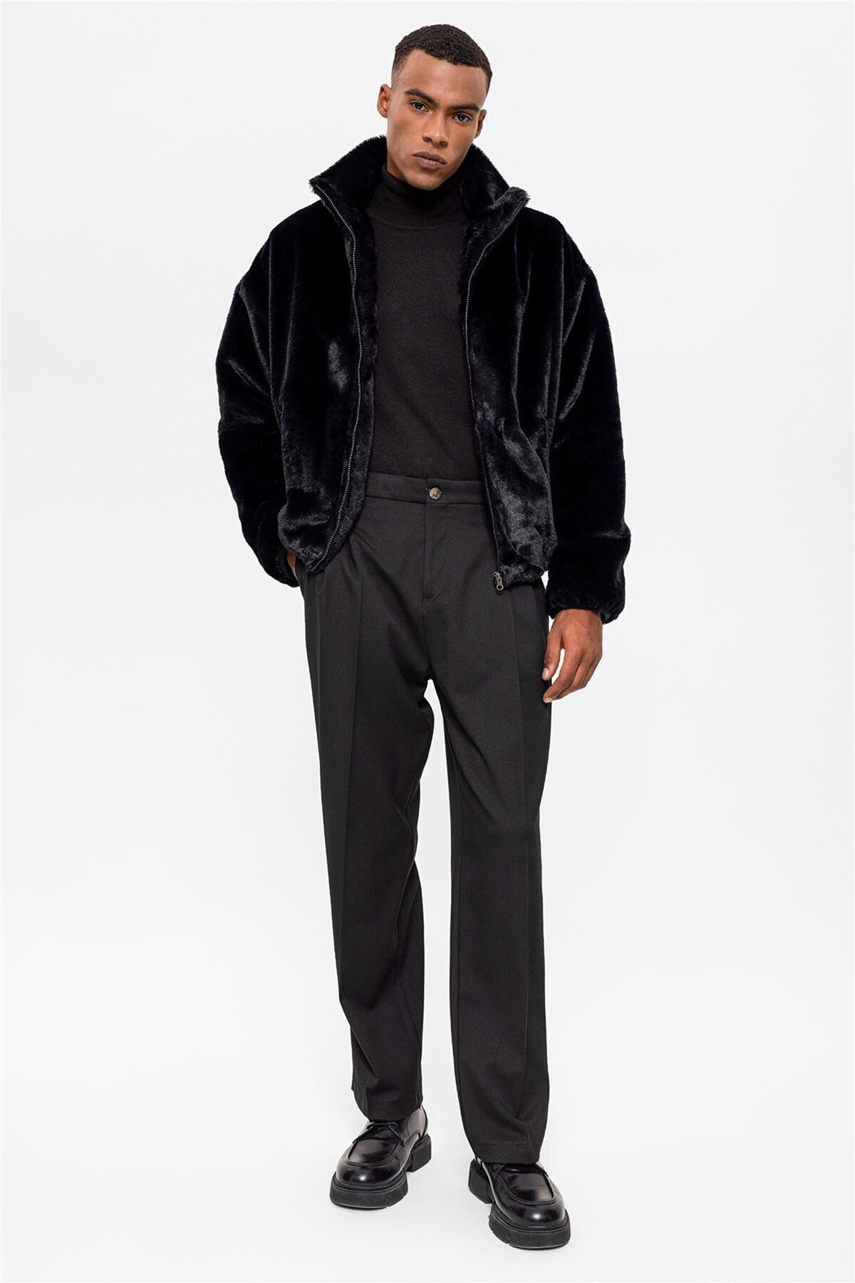 Siyah Erkek Dik Yaka Suni Kürk Mont Siyah Erkek Dik Yaka Suni Kürk Mont A21Y8139 XL