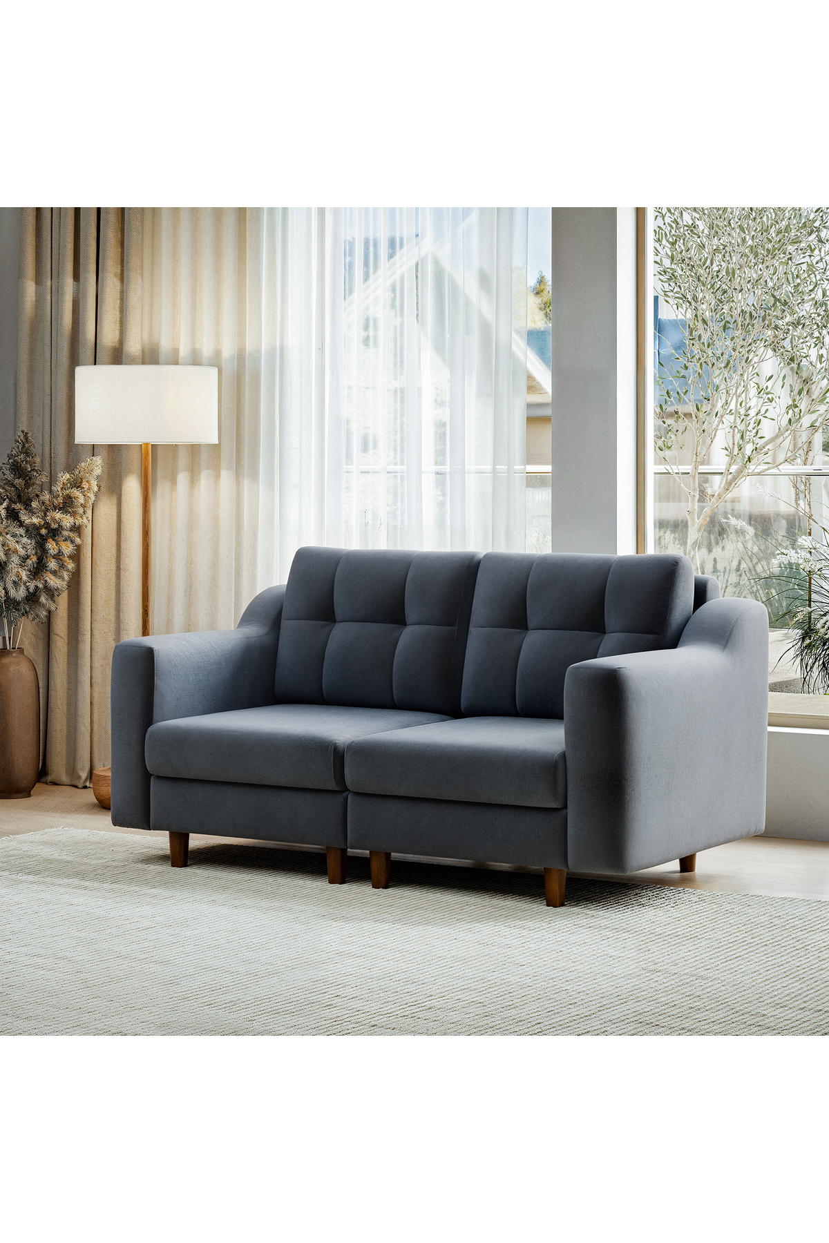 yazlık için aldık. horoz lojistik getirdi. doğtaşın montaj hizmetini istedik. servis kargo tesliminden sonra geldi. ürün 2 tek kişilik koltuğun birleşimi şeklinde tasarlanmış modülleri istediğin gibi tekli ikili üçlü dörtlü montajlayabilirsin. biz bir dörtlü bir ikili aldık. bence güzel oldu. hem kibar hem spor duruyor. oturumu yumuşak. arka yastıkları ister düğmeli ister dikişli kullanabilirsiniz. yastıkları kaldırınca tek kişi rahat sığar. biz yastıkla bile sığdık. kadife yumuşak bir kumaşı var. rengi tok.