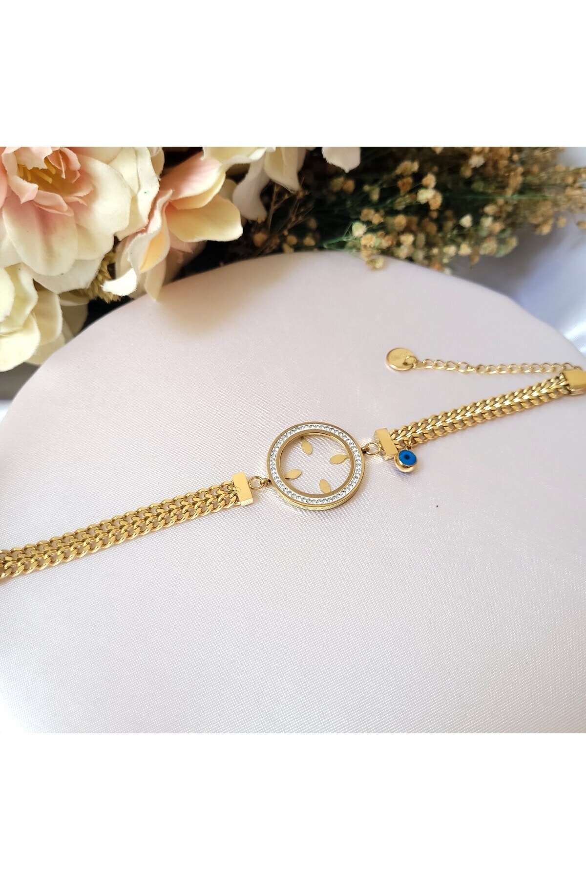 Çeyrek Ve Nazar Boncuklu Çelik Bileklik Antialerjik Çeyrek Ve Nazar Boncuklu Çelik Bileklik Antialerjik shopfyy091 S