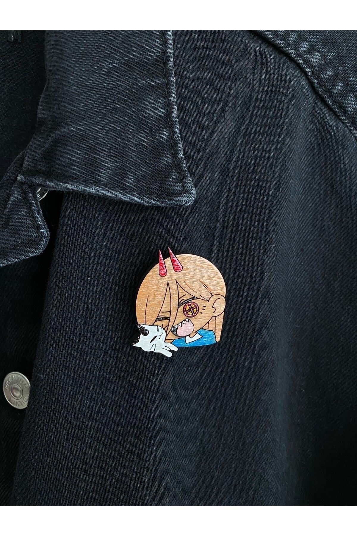 Chainsaw Man Pochita Ahşap El Boyaması Broş Chainsaw Man Pochita Ahşap El Boyaması Broş GTBROSANIME044 تک سایز