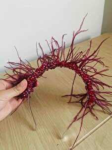 Bordo Kristal Taşlı Tüylü, Nişan, Kına, Düğün Tacı Bordo Kristal Taşlı Tüylü, Nişan, Kına, Düğün Tacı TYC00783898741 تک سایز