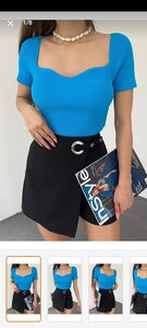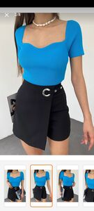 Kadın Mavi Kalp Yaka Kısa Kollu Triko Bluz Kadın Mavi Kalp Yaka Kısa Kollu Triko Bluz MM9633 S/M