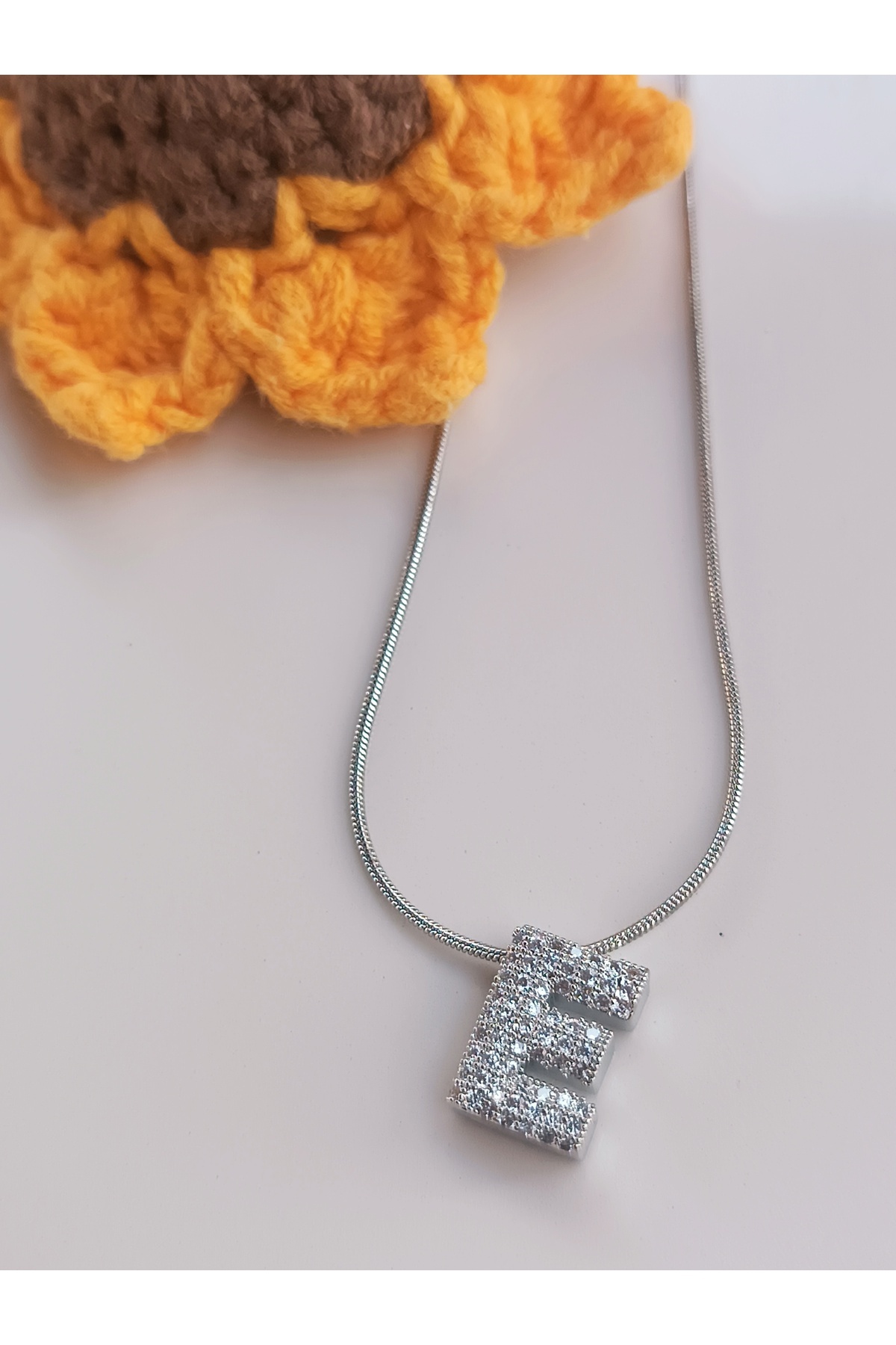 925 Ayar Gümüş Taşlı Harfli Kolye- E Harfi - Standart 925 Ayar Gümüş Taşlı Harfli Kolye- E Harfi - Standart ADA002 تک سایز