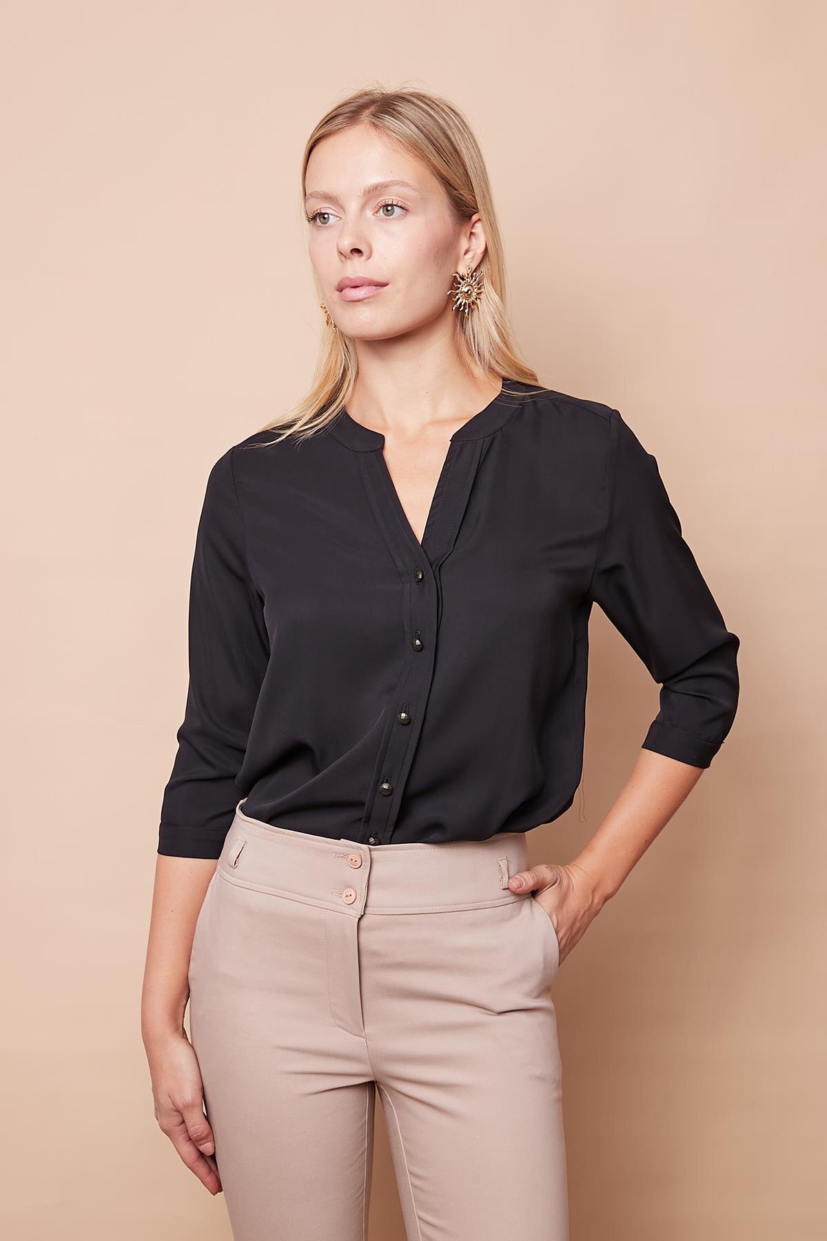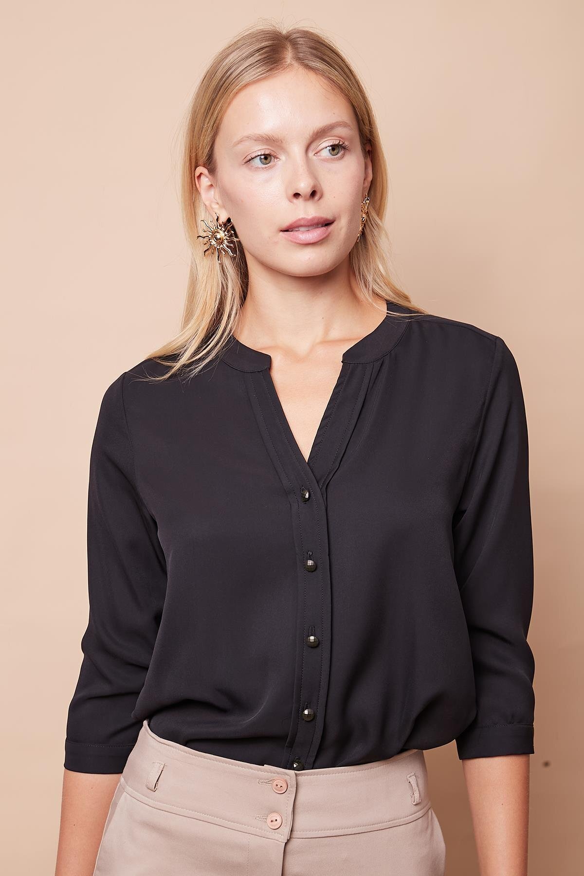 Hakim Yaka Truvakar Capri Kol Likrasız Şık Kumaş Ofis Gömlek-Siyah Hakim Yaka Truvakar Capri Kol Likrasız Şık Kumaş Ofis Gömlek-Siyah 90039 XL
