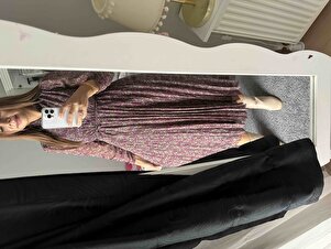 Mürdüm Çiçekli Astarlı Gömlek Yaka Şifon Elbise Mürdüm Çiçekli Astarlı Gömlek Yaka Şifon Elbise 8871 L