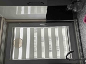 Ölçüye Özel Beyaz Cam Balkon Sürgülü Cam Perdesi - Brillant Yapıştırmalı Zebra Perde Venti Ölçüye Özel Beyaz Cam Balkon Sürgülü Cam Perdesi - Brillant Yapıştırmalı Zebra Perde Venti VP2713 تک سایز