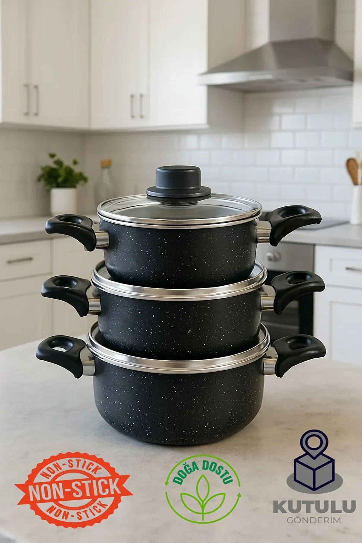 Döküm 6 Parça Granit Tencere Takımı - Yanmaz Yapışmaz 16-18-20 CM - Kapaklı Döküm 6 Parça Granit Tencere Takımı - Yanmaz Yapışmaz 16-18-20 CM - Kapaklı Estaedatencere تک سایز