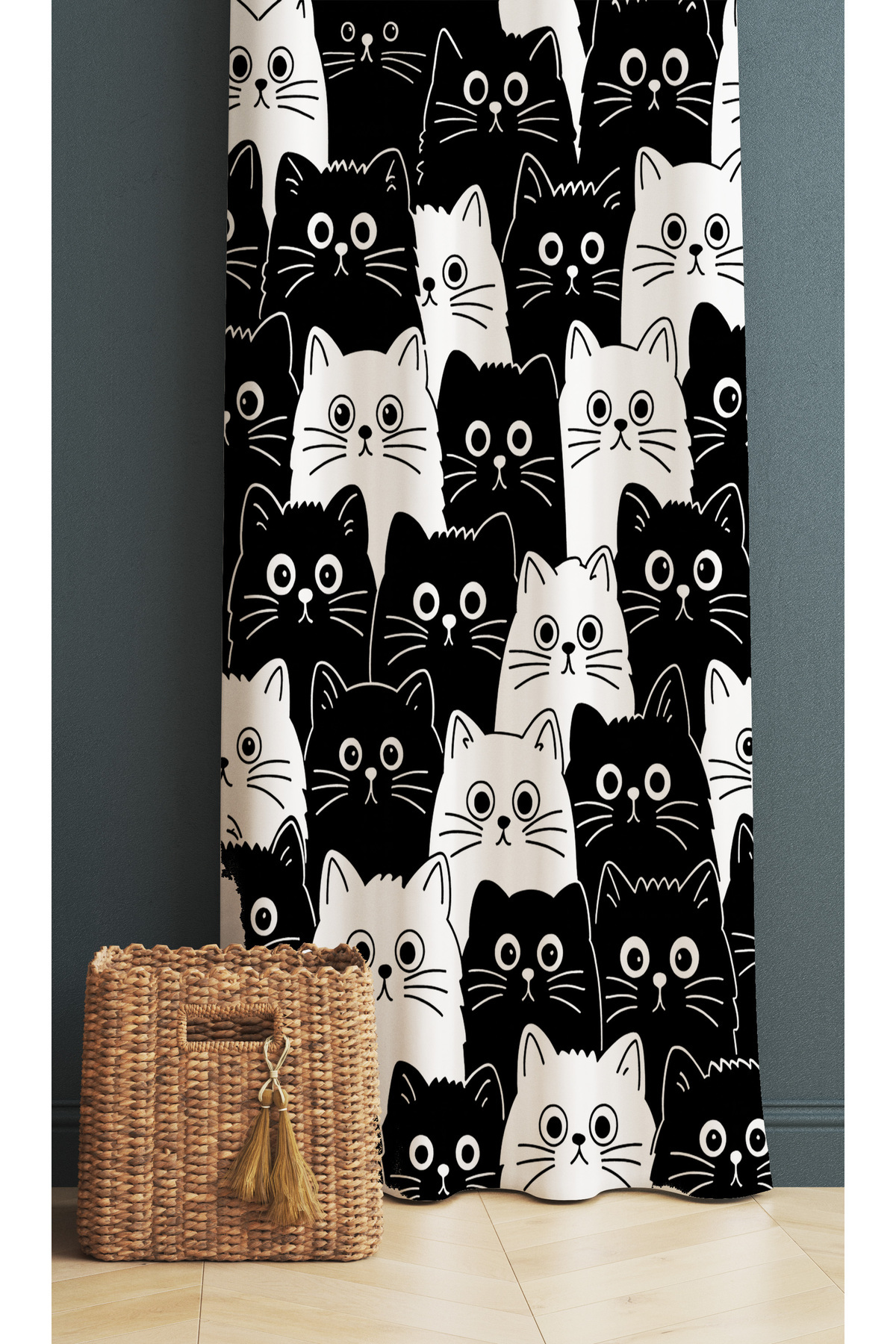 Baskılı Siyah Kalp Desenli Tek Kanat Kadife Doku Fon Perde - Beyaz Baskılı Siyah Kalp Desenli Tek Kanat Kadife Doku Fon Perde - Beyaz 83402 70 x 260
