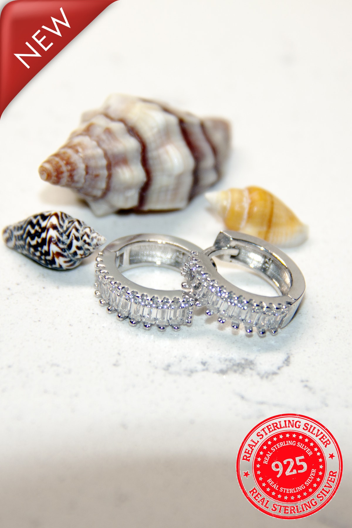 , 925 Ayar Gümüş, 13.5mm Huggies, Baget Taşlı, Yuvarlak Küpe, Italian Style , 925 Ayar Gümüş, 13.5mm Huggies, Baget Taşlı, Yuvarlak Küpe, Italian Style FNTR0008EAR103 تک سایز